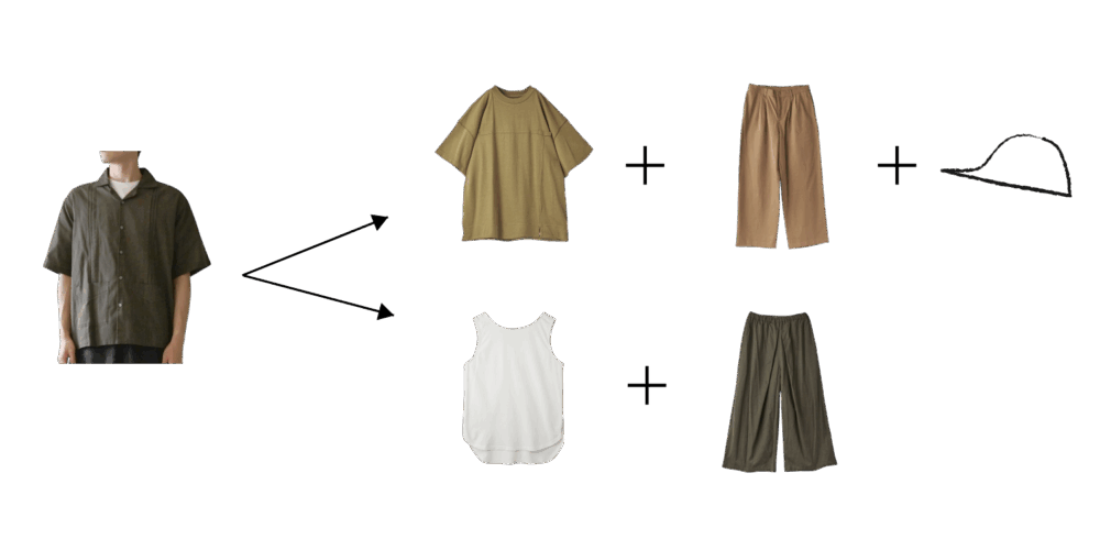 こちらはヘンプコットンシャツを合わせたリンクコーデ。