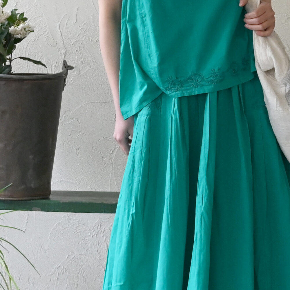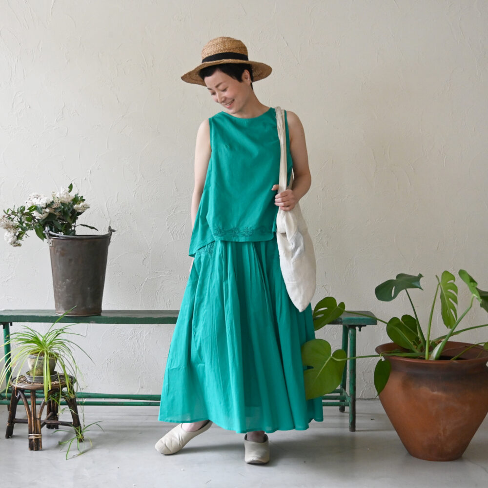 刺繍のあるボイルは洗いざらしでも着やすいけれど、どこか纏うと品があり、さらりとしていて飽きません。