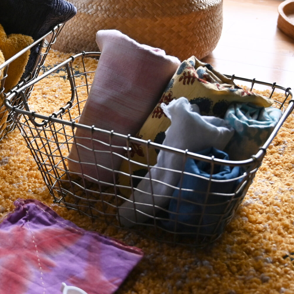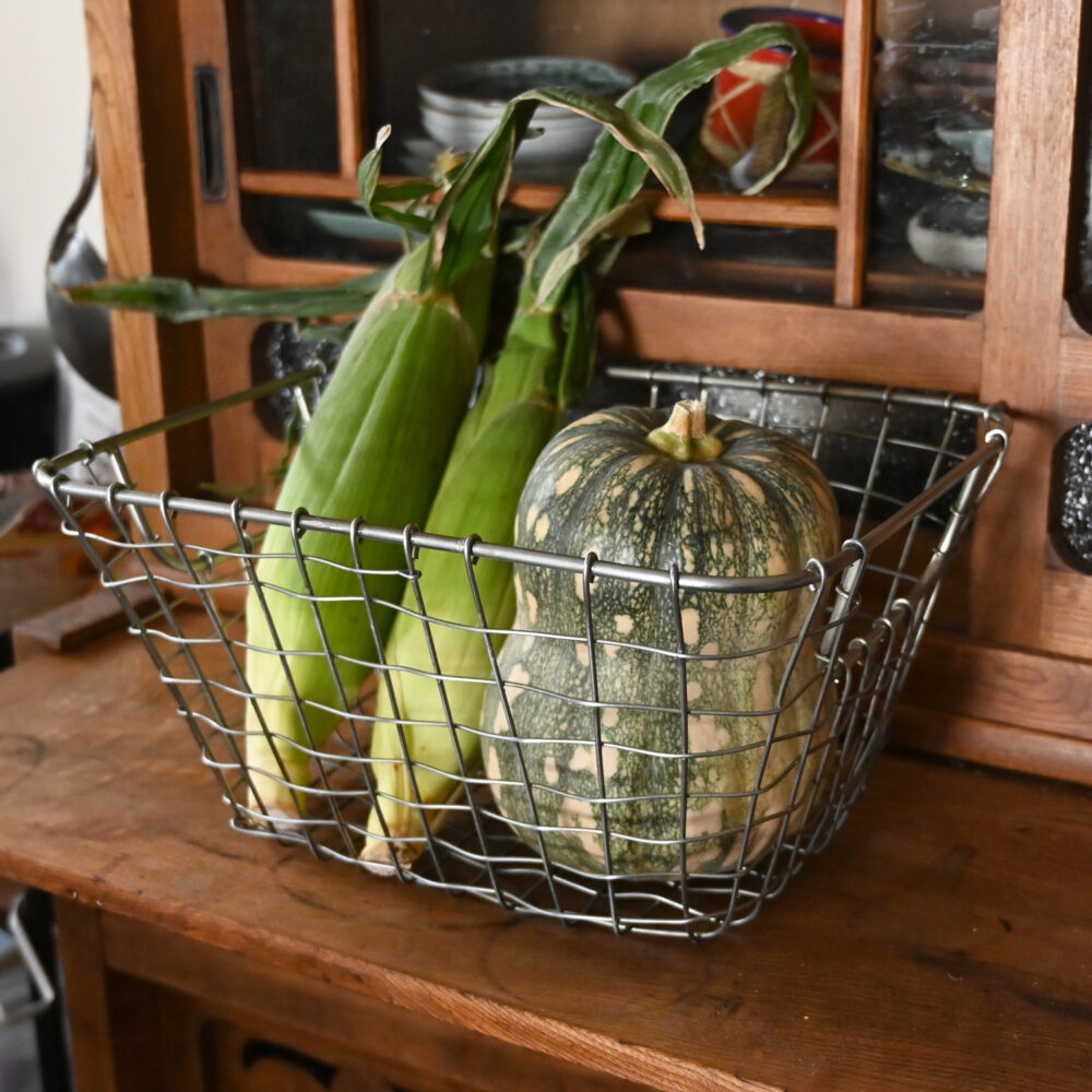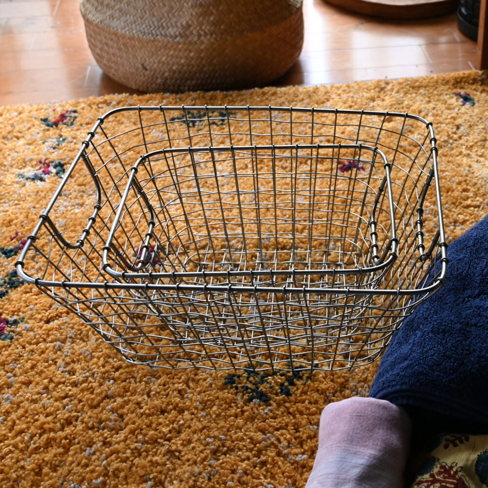 スクエア型のバスケットは、鉄を使って職人が仕上げた手仕事の一品。