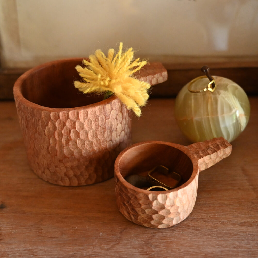 ぽこぽことした堀り模様が可愛いので、お部屋のインテリアや小物入れとしてもお楽しみください。