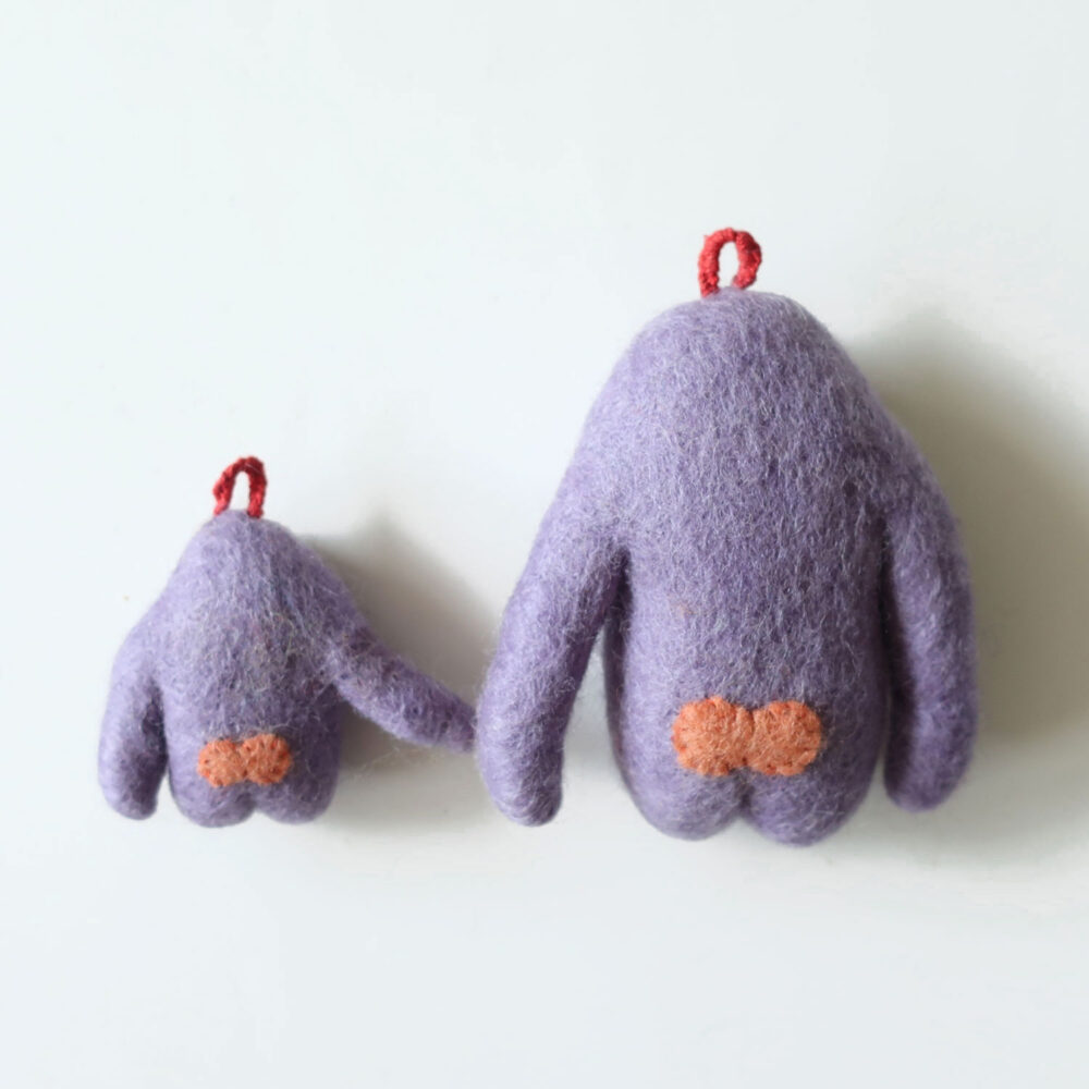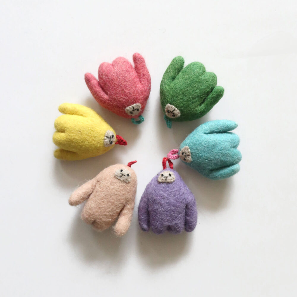 フェルトを絡ませるようにニードルで何度も刺しながら作られています。