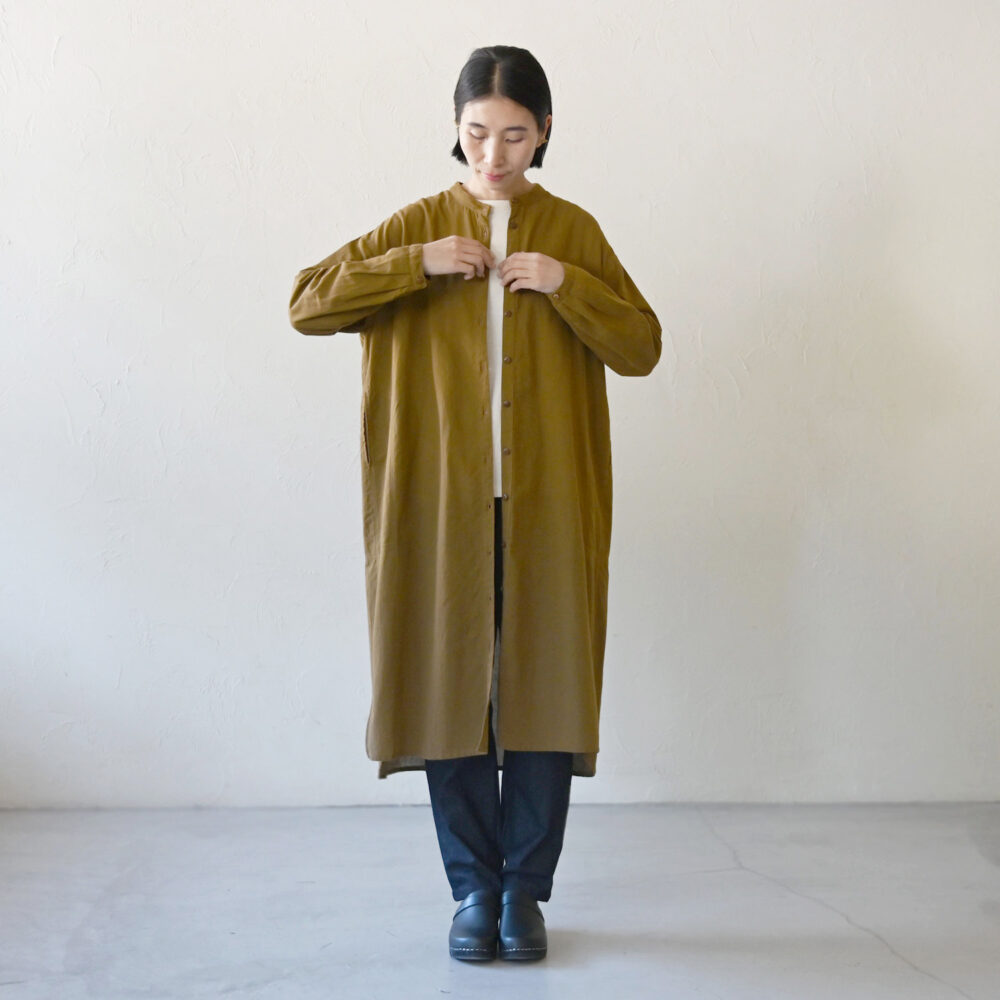 抜け感を出したいときは、明るいインナーを仕込んでワンピースを羽織にすると◎