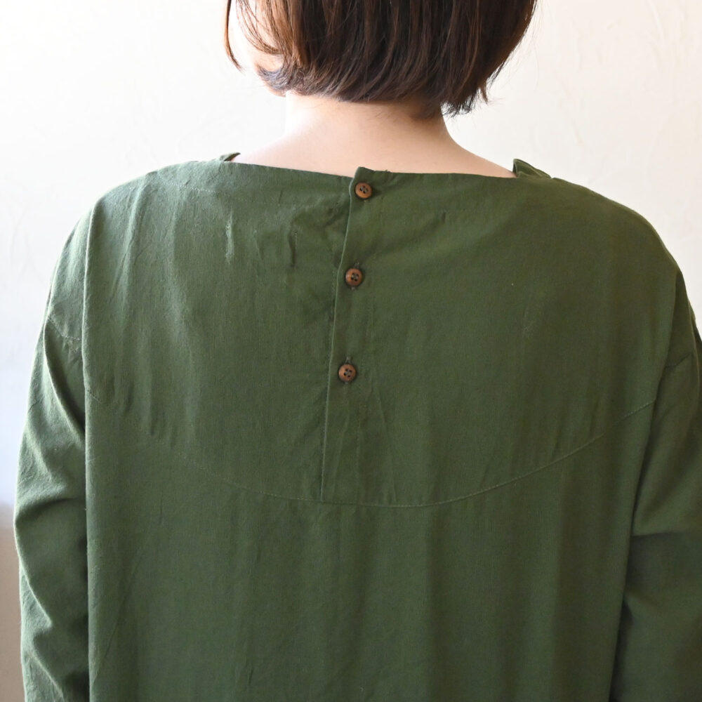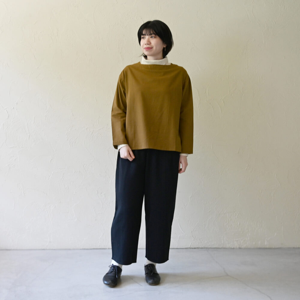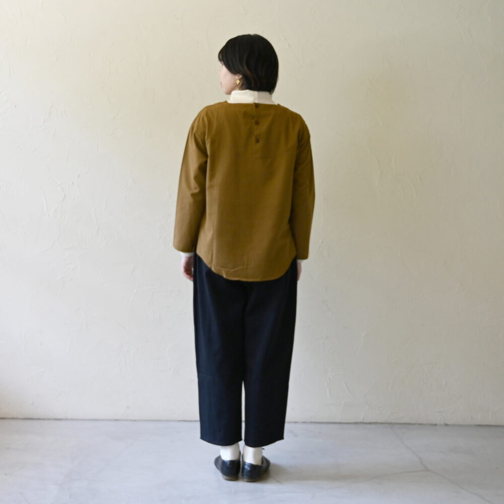 ウシロボタンボートネックプルオーバー
