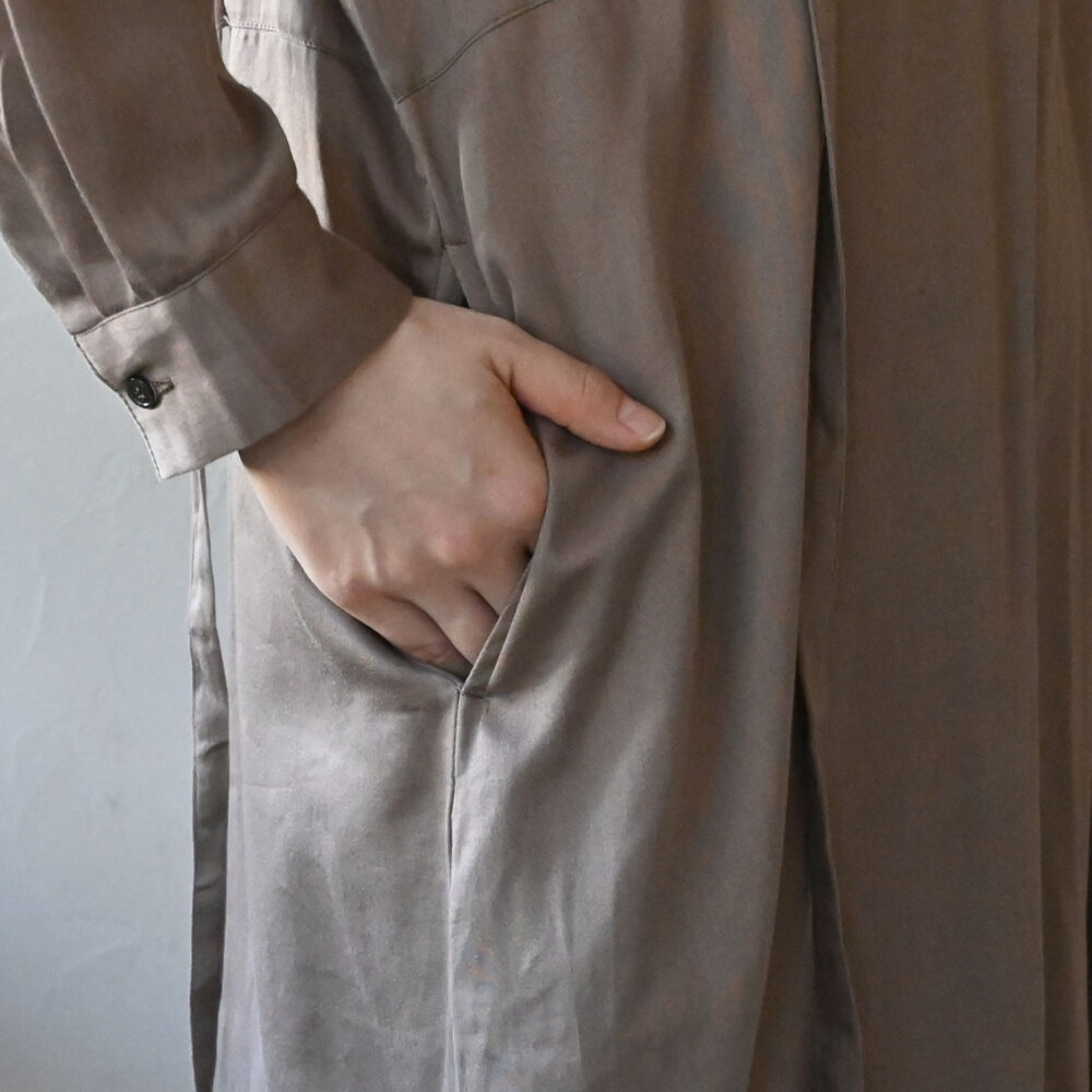 サテンの優しい光沢に合うシェルボタンを採用しています。