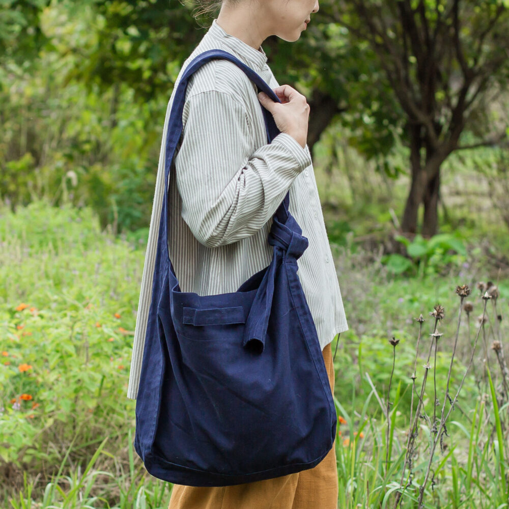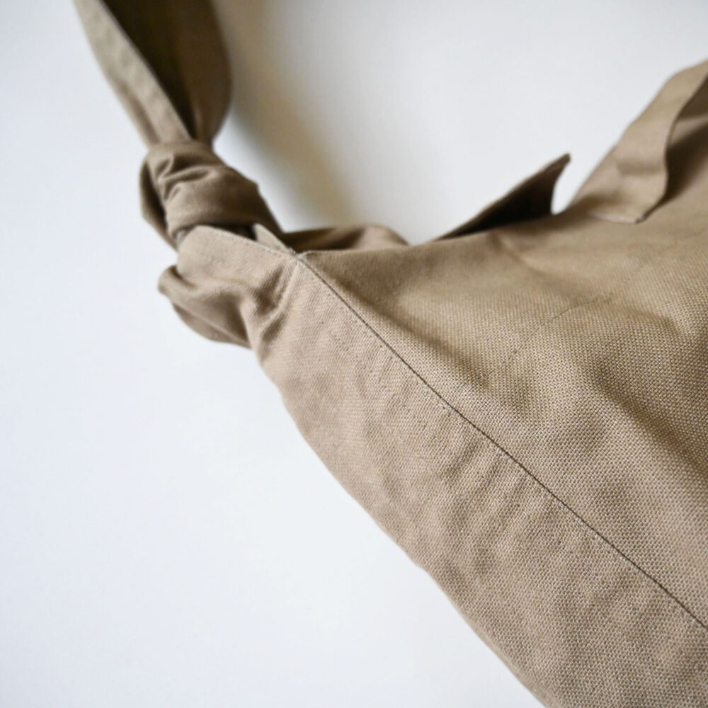 ショルダー紐を結ぶ位置で、長さを自由に変えることができるので、それぞれのお好みや生活スタイルに寄り添う一品です。