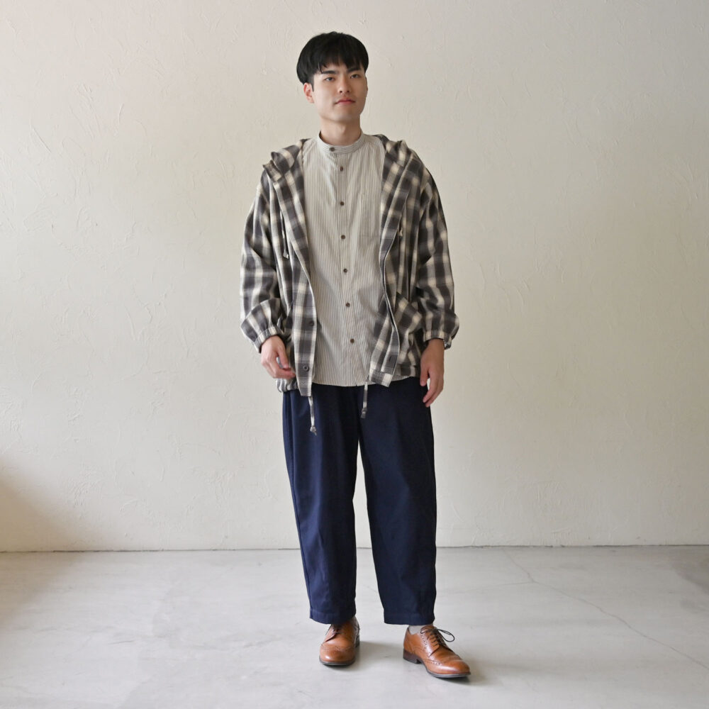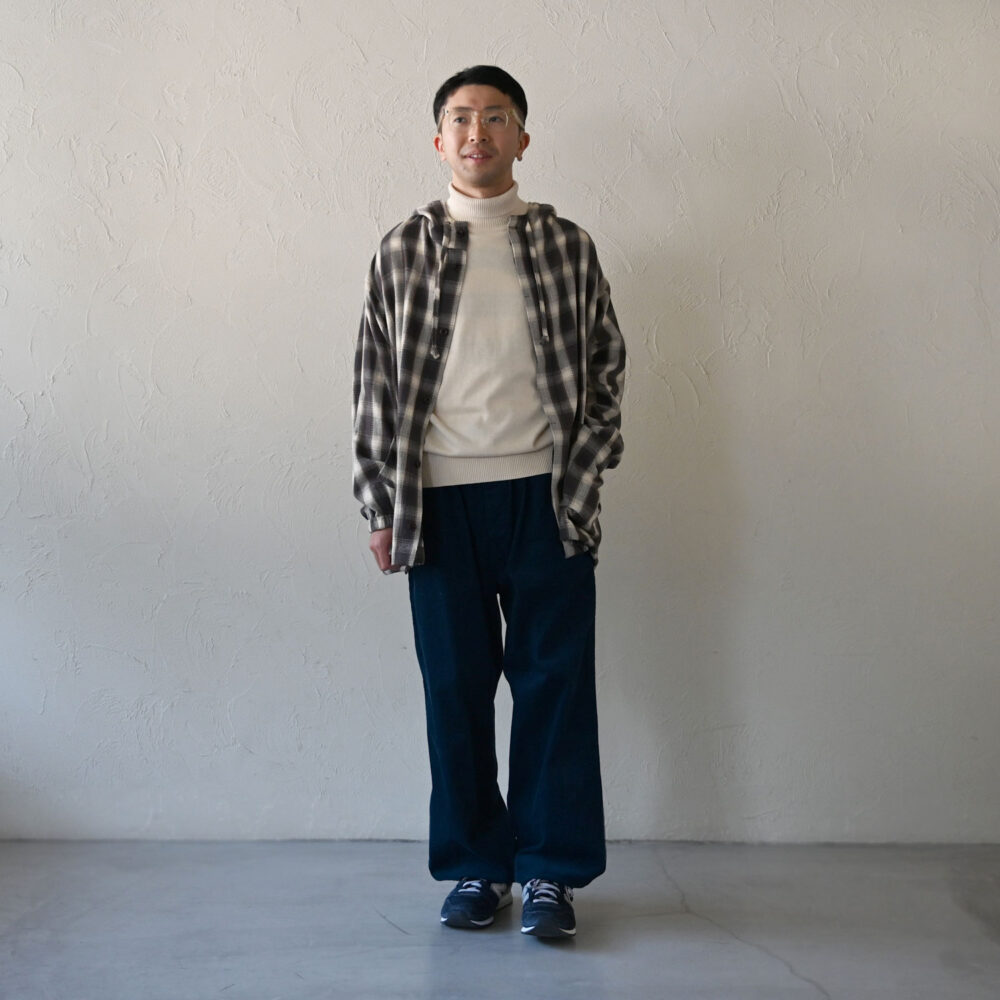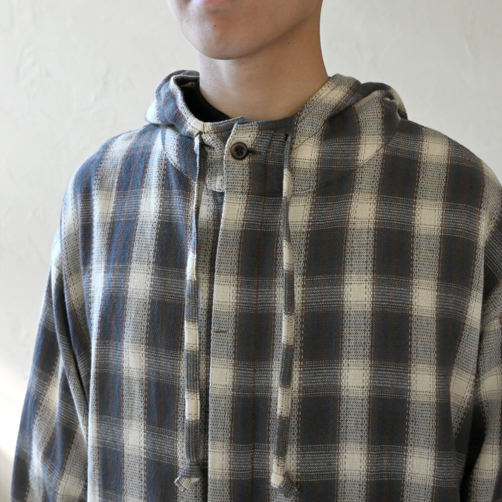 陰影を表現した美しいオンブレチェック柄が、個性のある秋冬のパーカースタイルに仕上げてくれます。