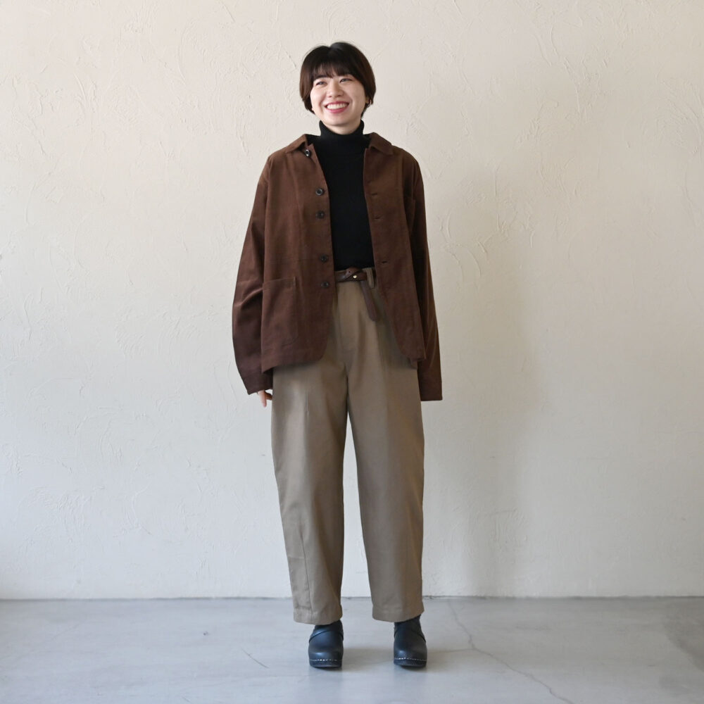細目のタテ畝と、コーデュロイ特有のツヤが、カジュアル過ぎずコーディネートしやすいのがポイントです。