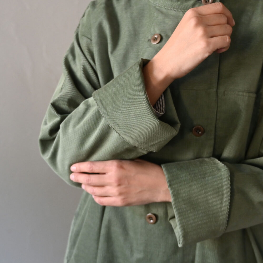 厚手で風を通しにくいので、真冬まで活躍するコーデュロイの生地。
