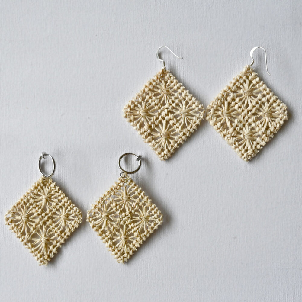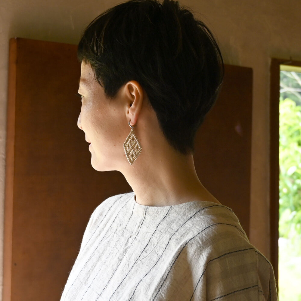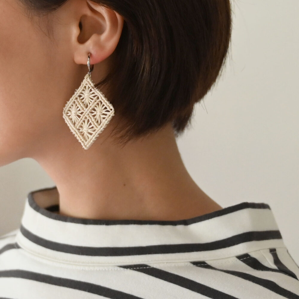 イヤリング:アバカ(糸芭蕉)100%(手編み / 無染色) / イヤリングパーツ:真鍮(ニッケルフリーメッキ)