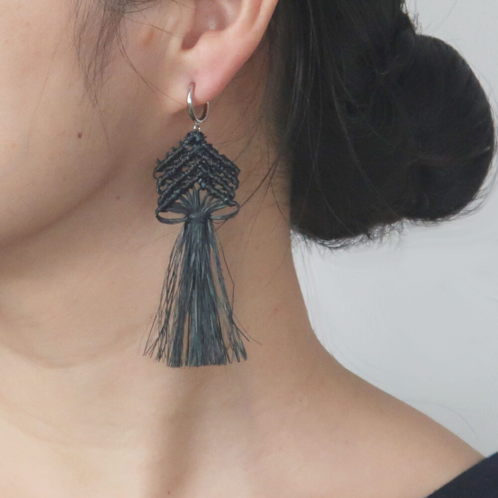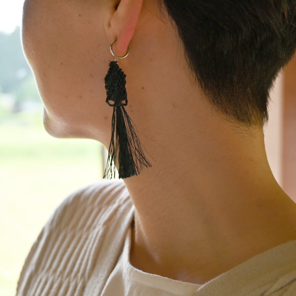 しなやかな編みの動きとタッセルで、まるで耳元で魚が泳いでいるような涼やかな存在に。