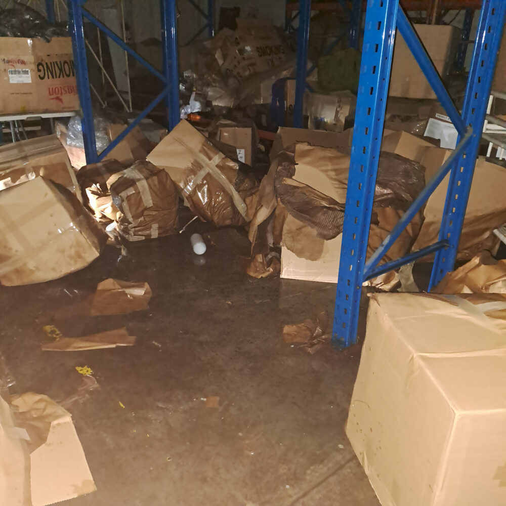 (台風により水浸しになったCCAPの倉庫)