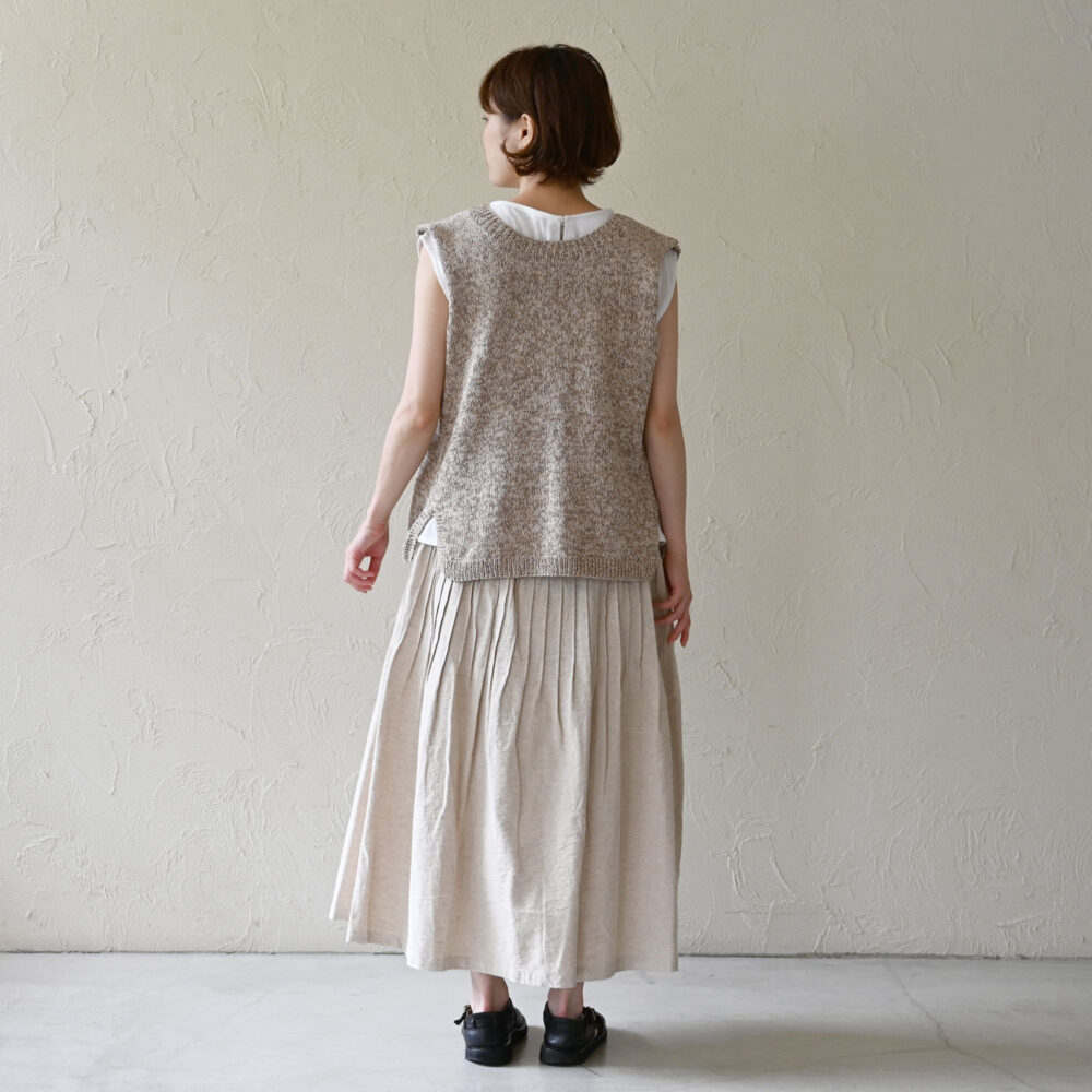 サマーニットベストを羽織れば、可愛さと上品さのある夏のレイヤードスタイルに。