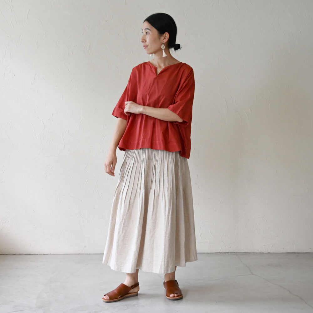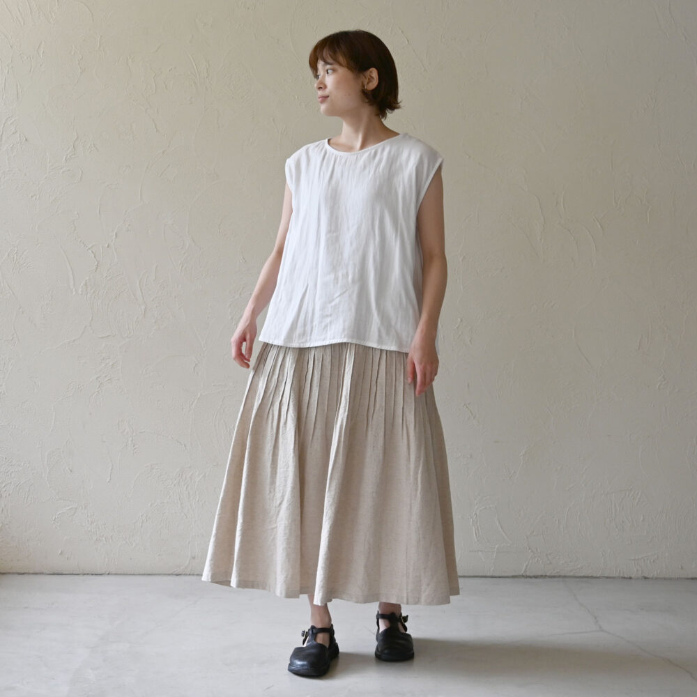 丁寧に一本一本畳まれたピンタックが美しいスカート。
