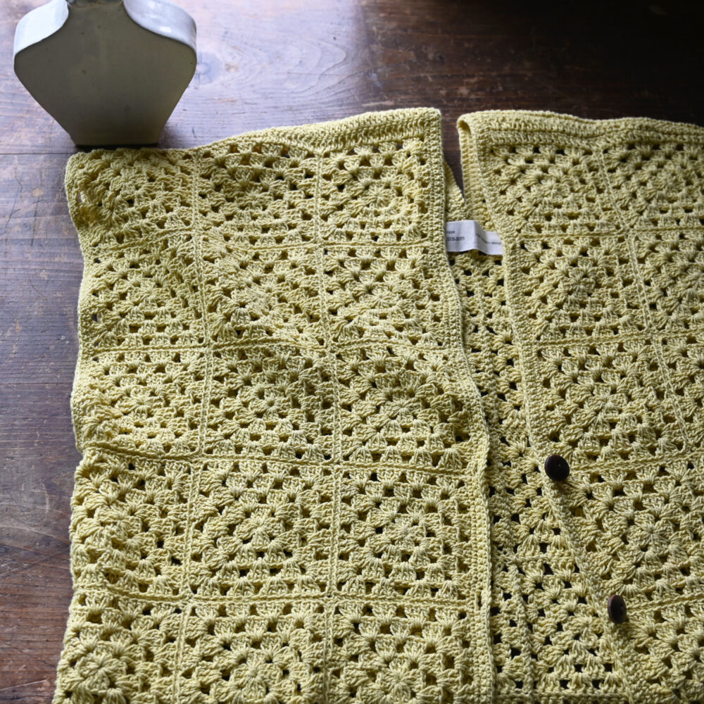 ※この製品は手編みの為、伸びやすくなっております。ハンガーで吊らず、たたんで保管して下さい。