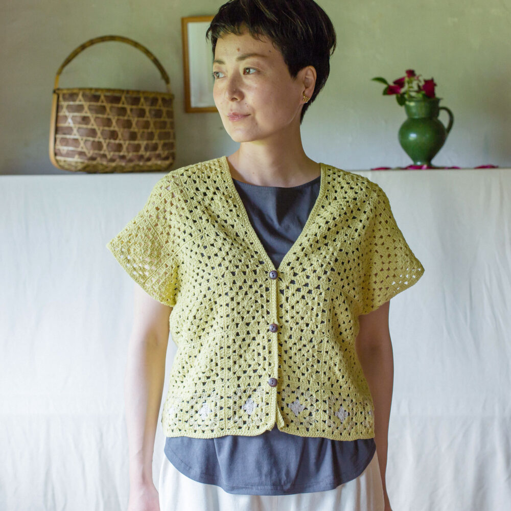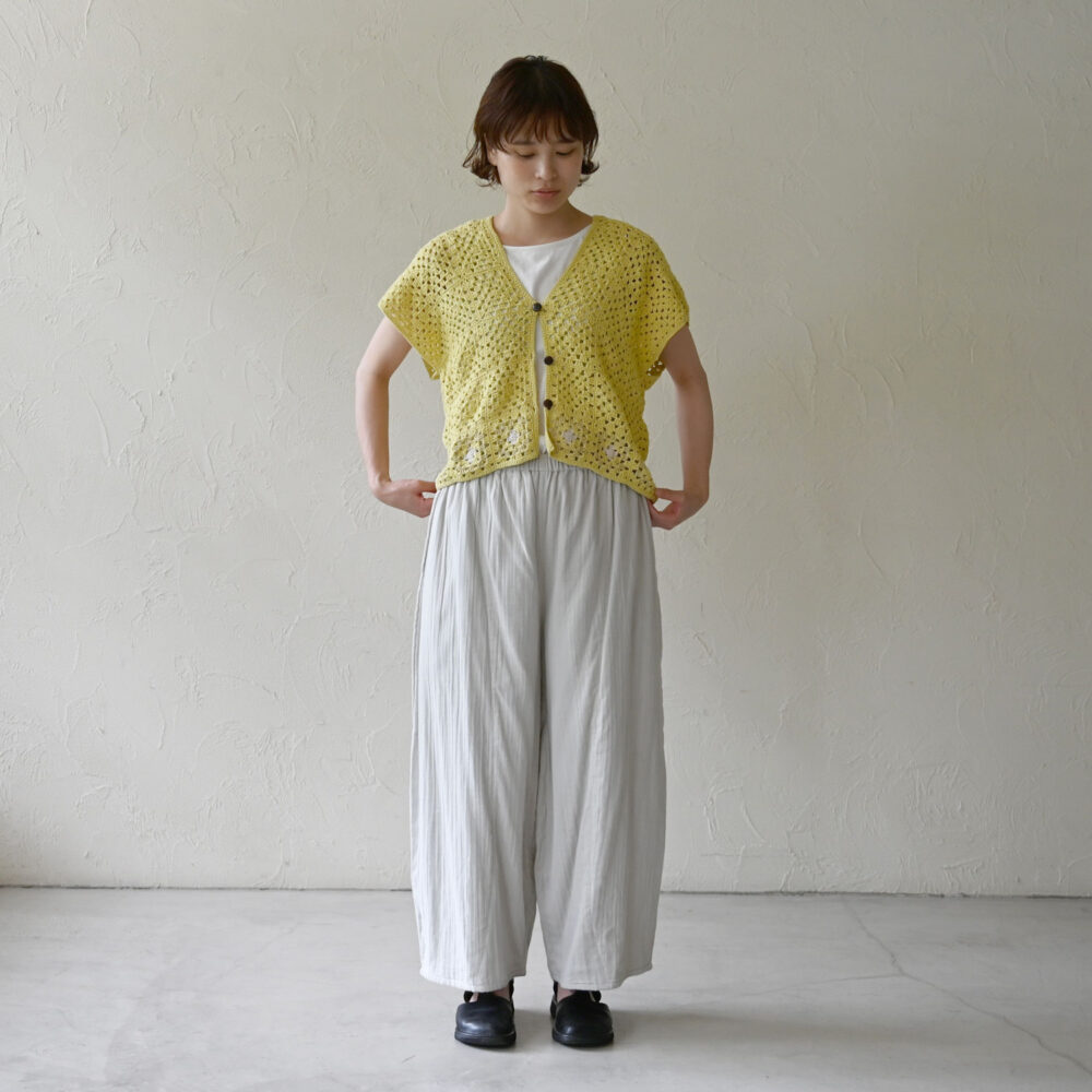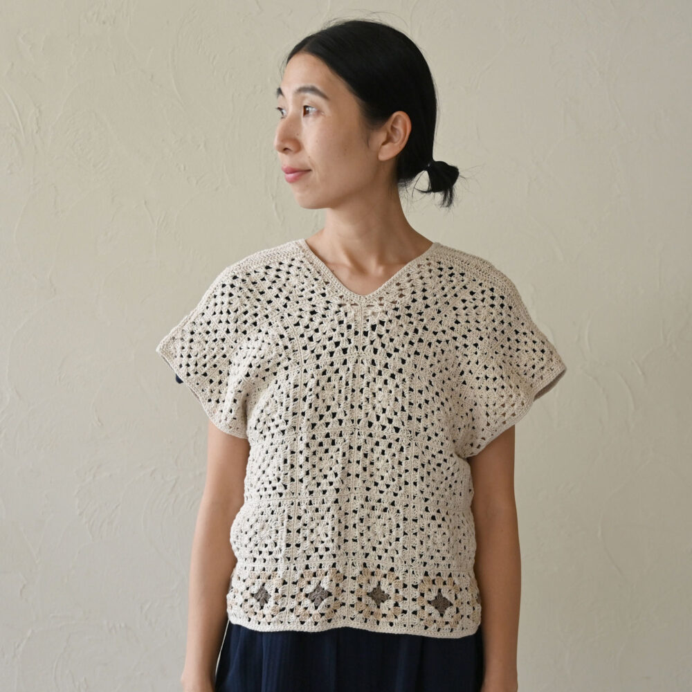 春から夏にかけても手編みが楽しめるコットン糸で、ネパールの女性たちが一目一目、かなりの根気と手間をかけて編み上げてくれました。