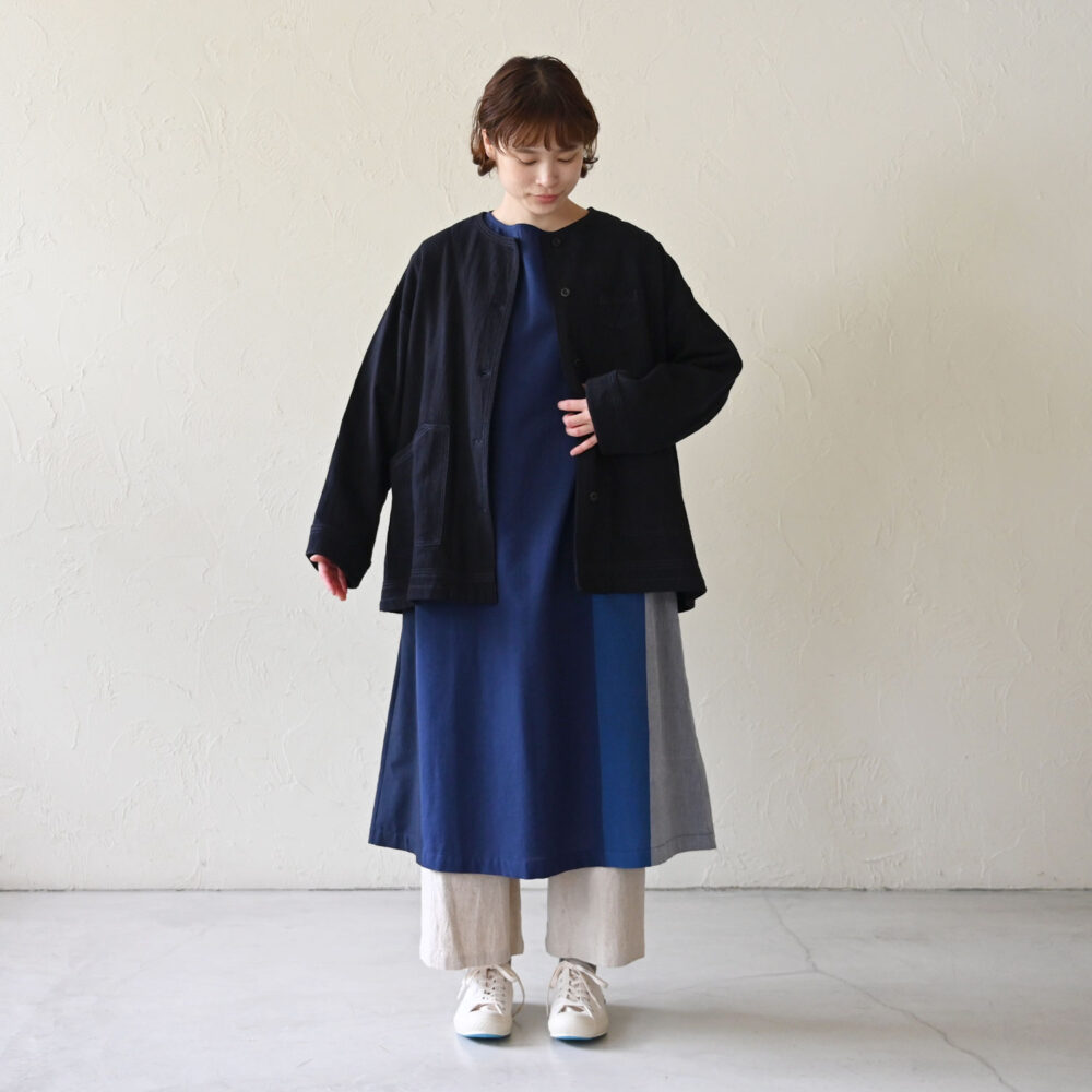 ちらりと見えるインナーのタテシマ模様が良いアクセントに。