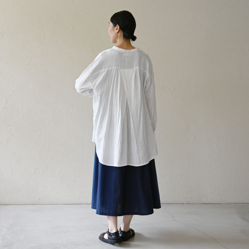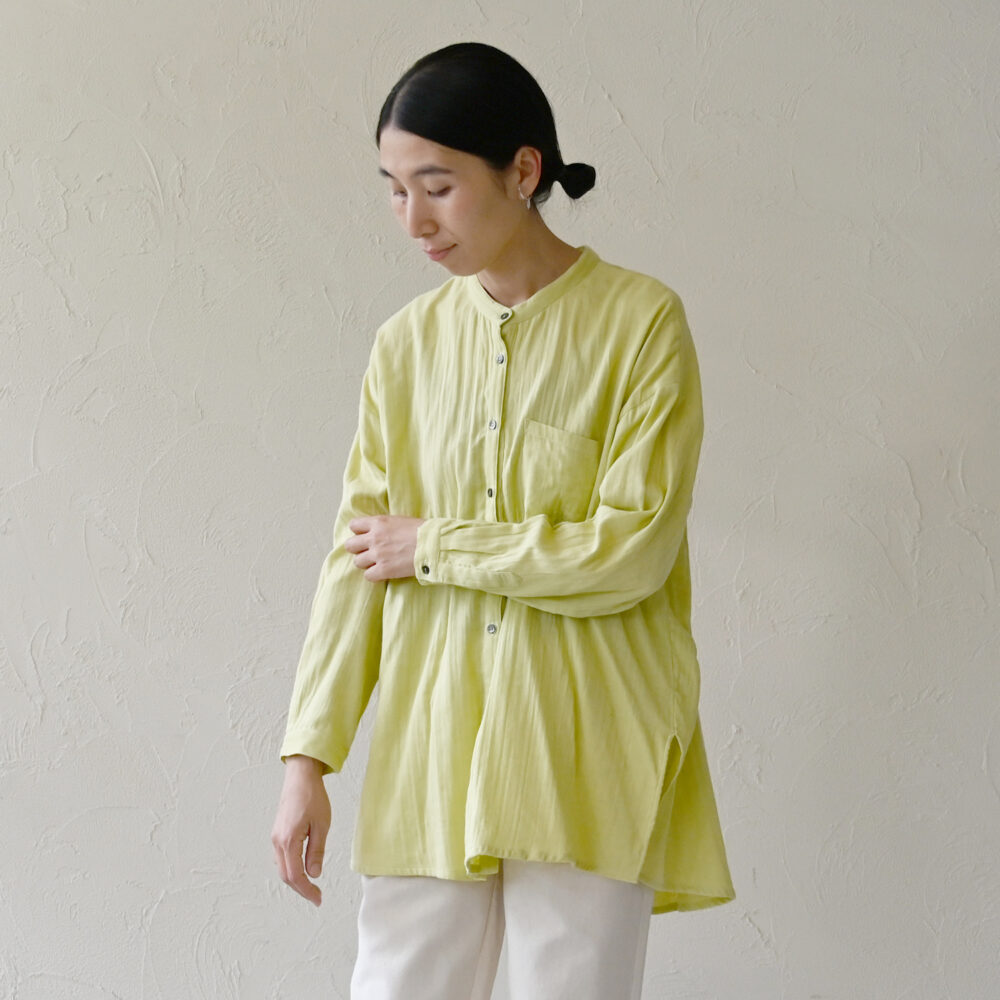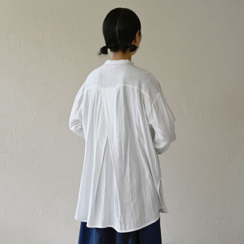 スタンドカラーで、シャツならではの凛々しさも大切にしました。