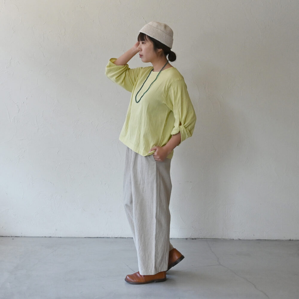 ダブルガーゼは、軽くて、蒸し暑い時でも快適にさらさらと着られるところが好きです。