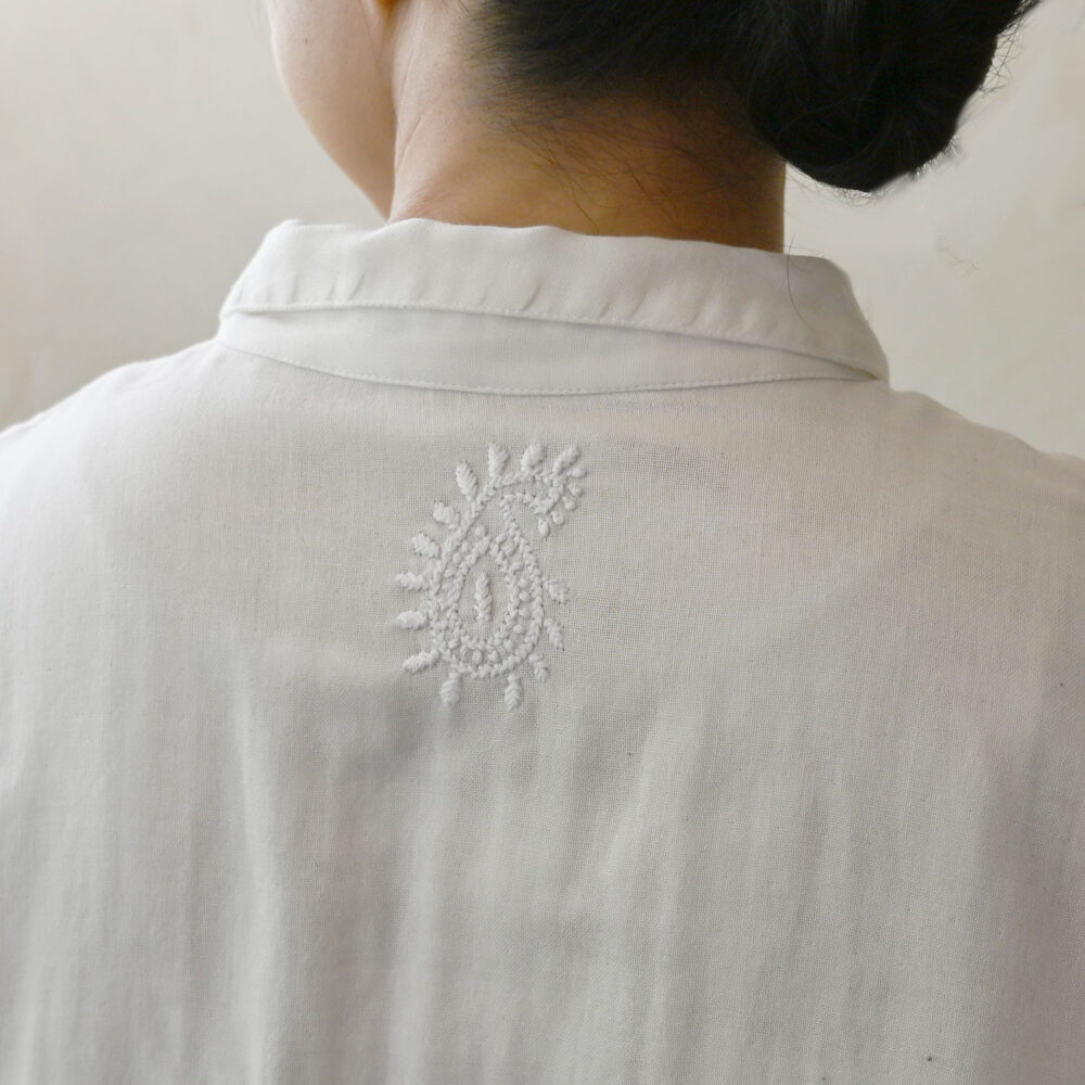 今季の背守りには、インドで親しみのあるニームウッドの葉をモチーフに選びました。