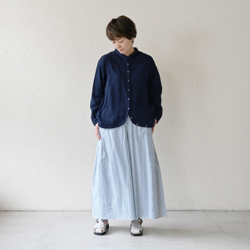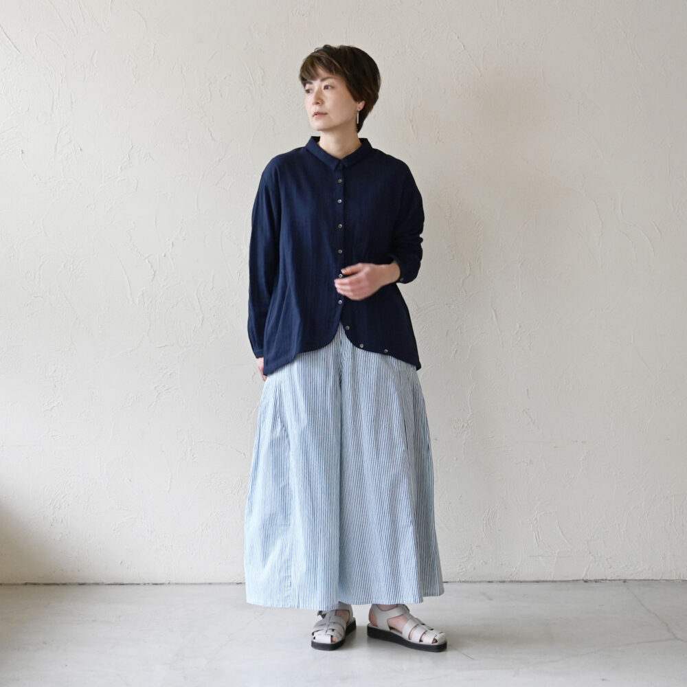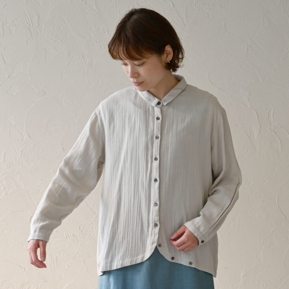 ダブルガーゼは、軽くて、蒸し暑い時でも快適にさらさらと着られるところが好きです。