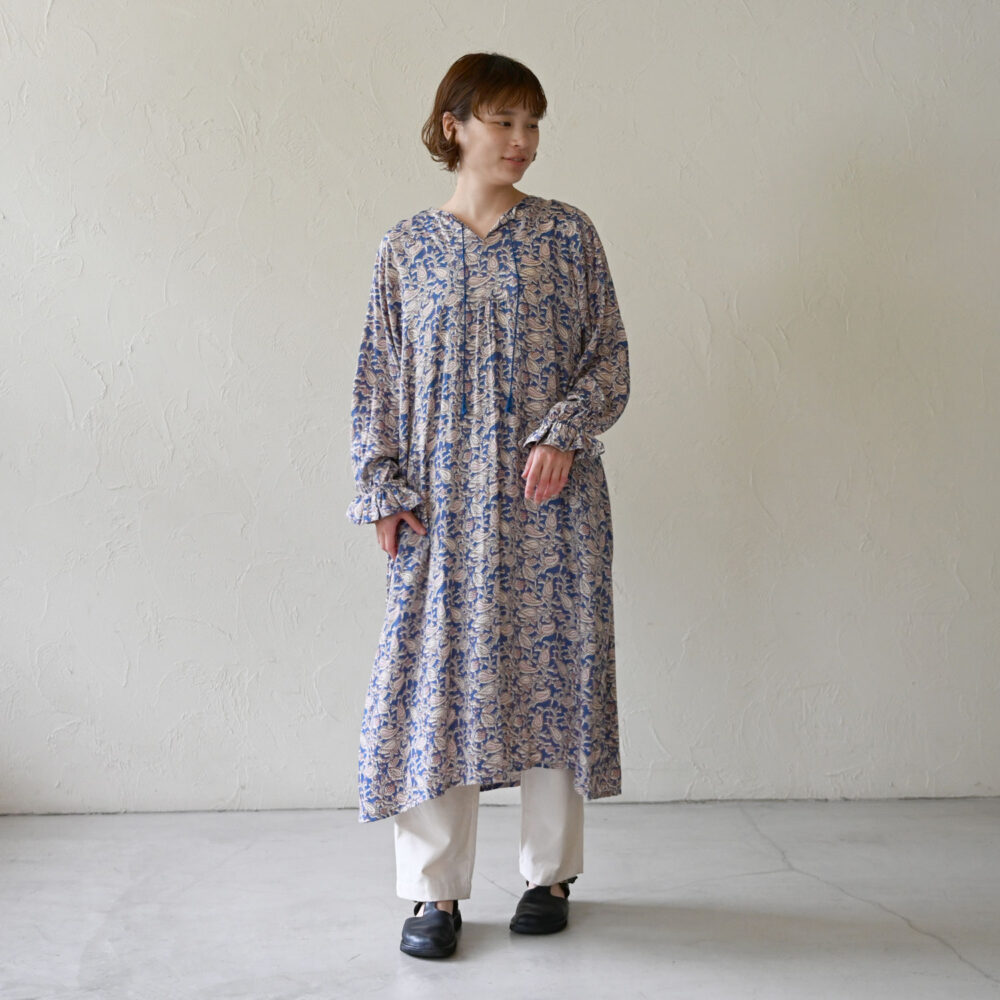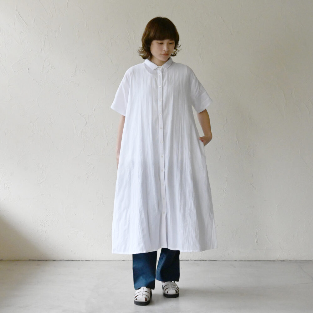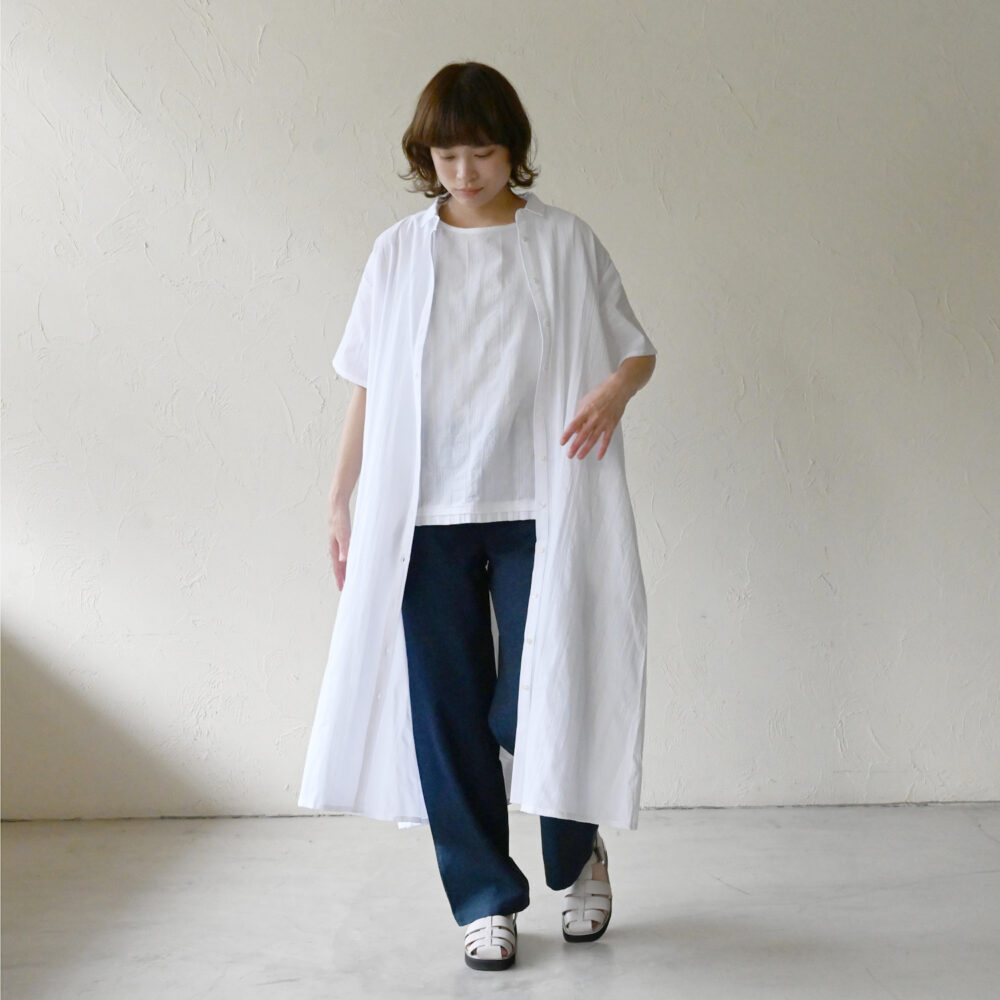 いつもは一枚でサラッと着るワンピースもストレートパンツと合わせると着こなしに奥行きがでます。