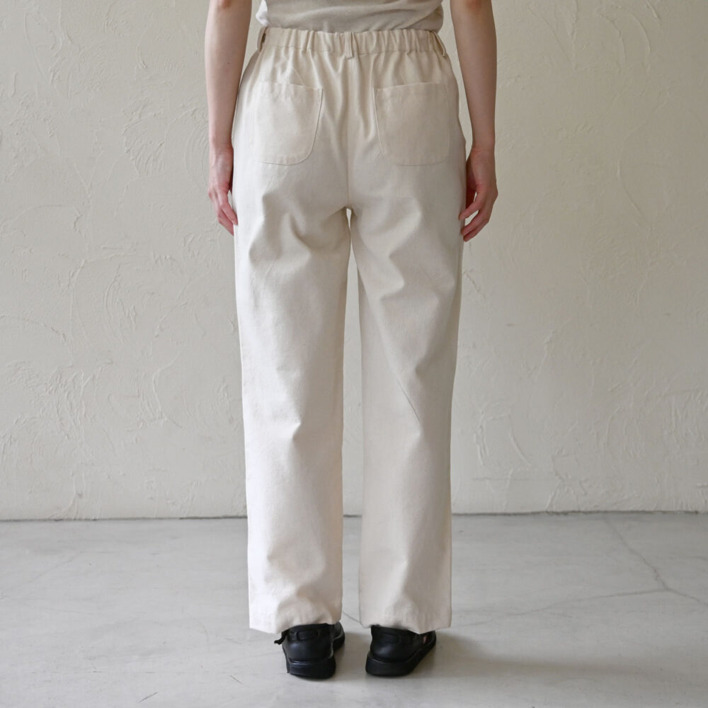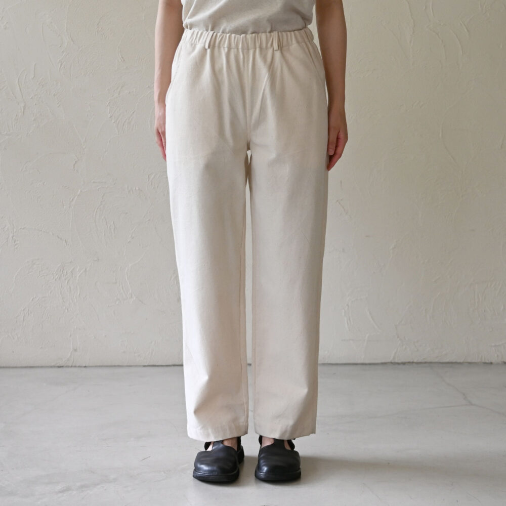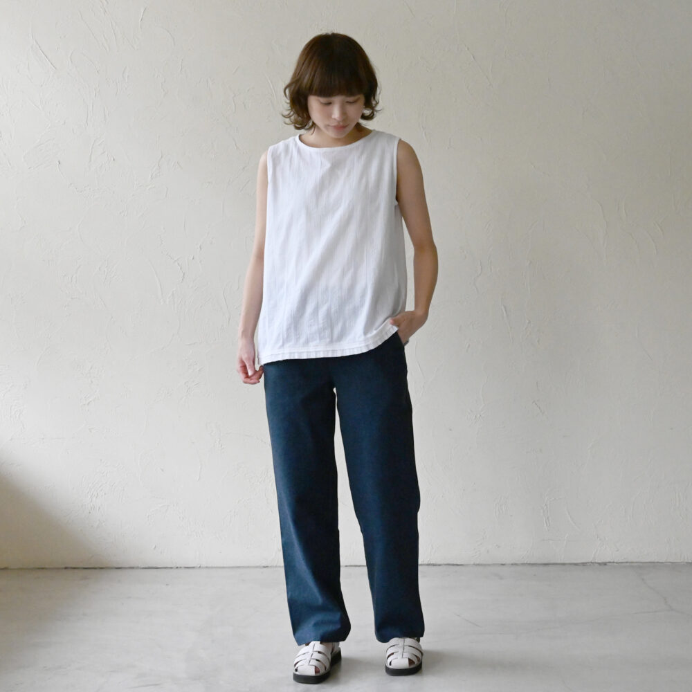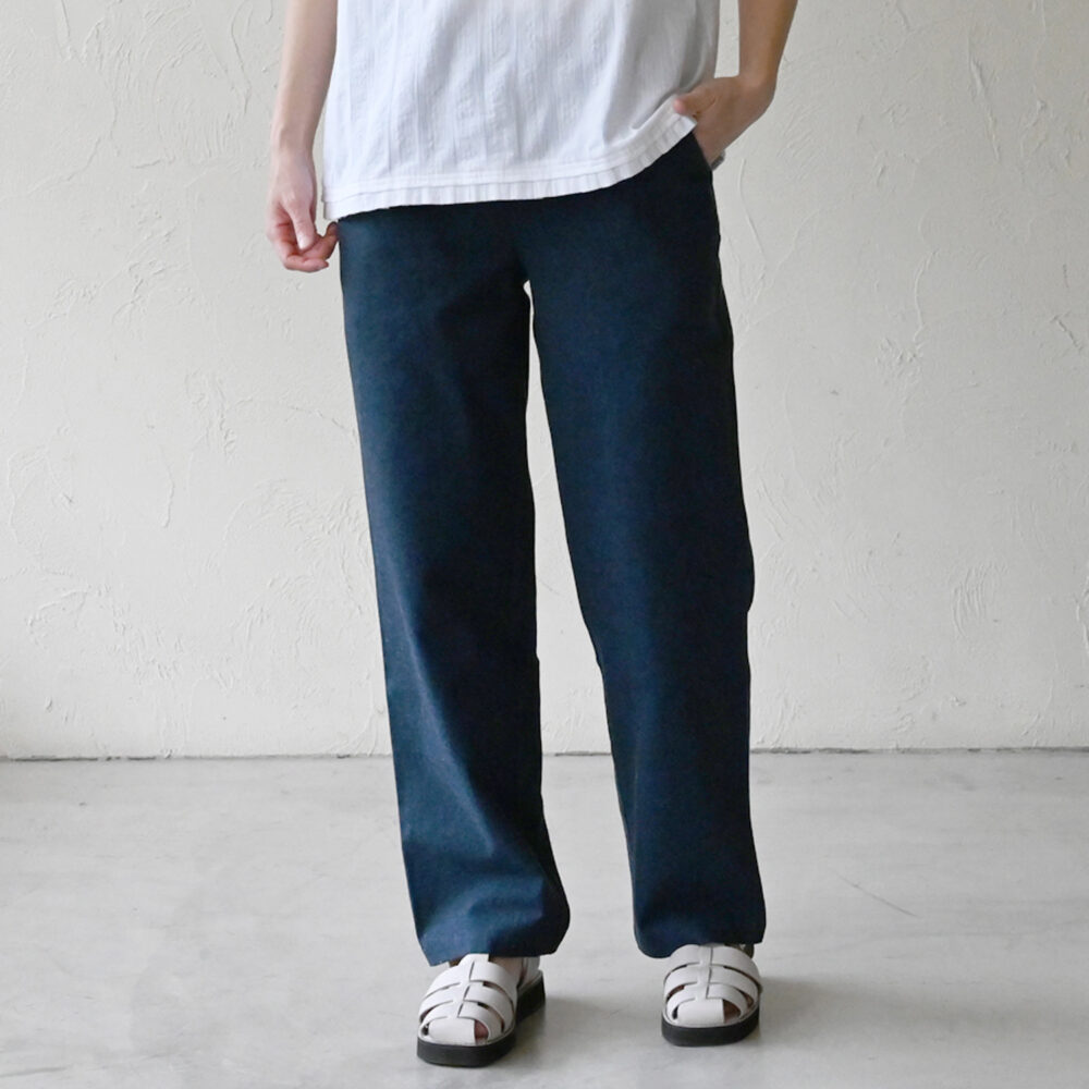 すっきり細身のパンツでありながら、着心地やsisamらしいゆとりを取り入れたデザイン。