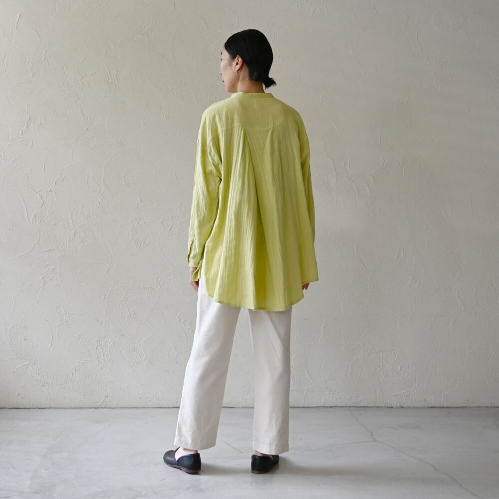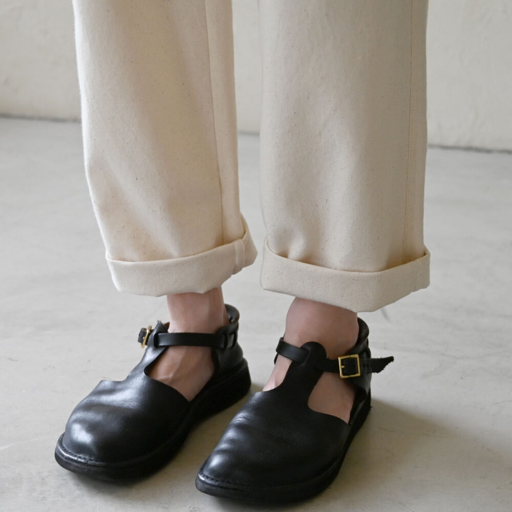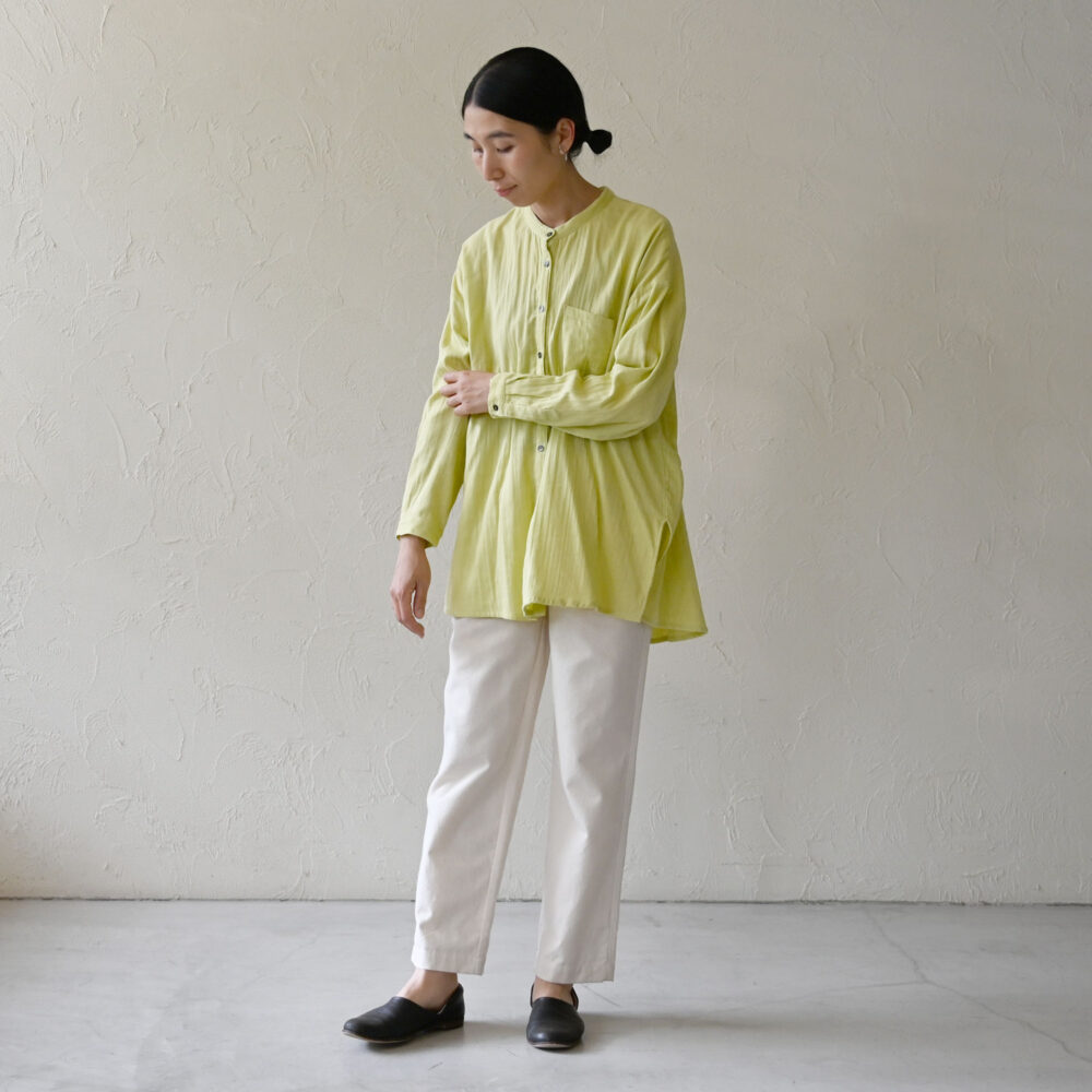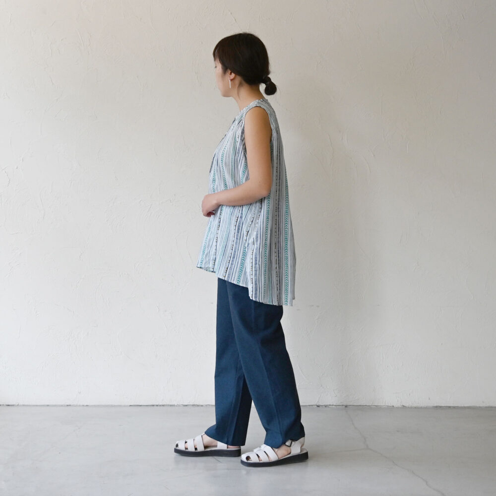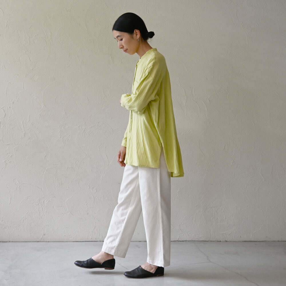 すっきり細身のパンツでありながら、着心地やsisamらしいゆとりを取り入れたデザイン。