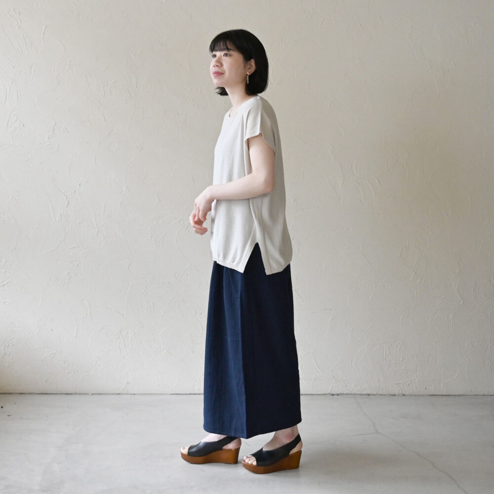深めのスリットでコーディネートに抜け感をだすことができます。