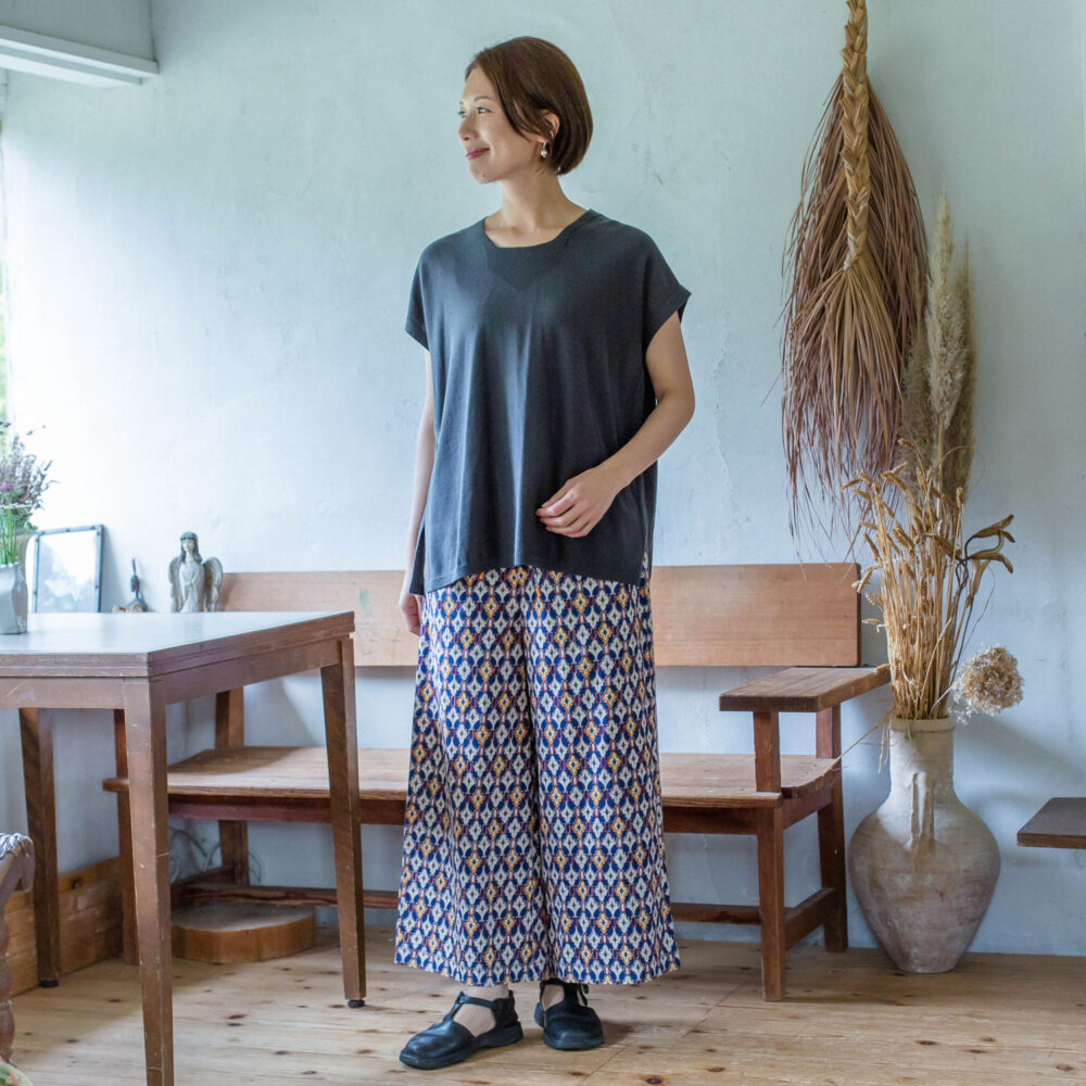 柄物パンツを楽しみたい日に、気軽に合わせられるこのトップス。