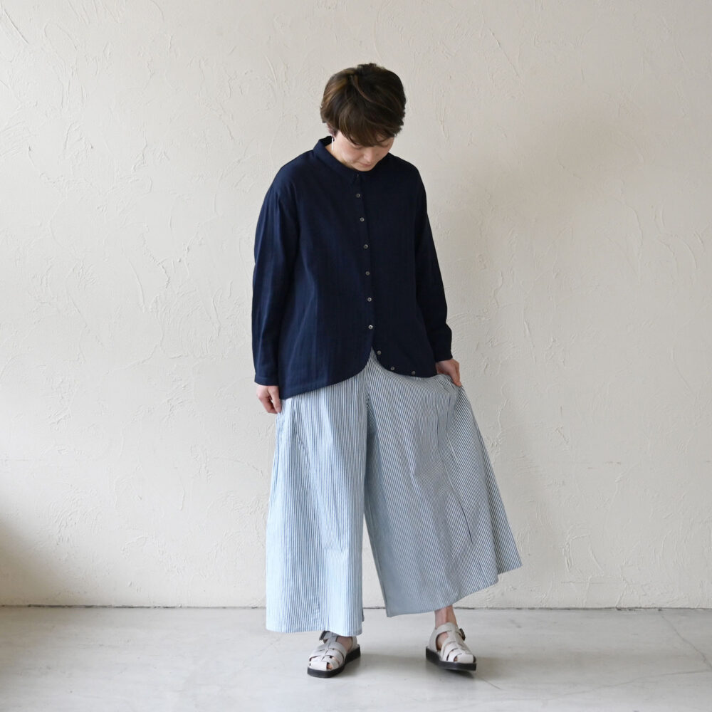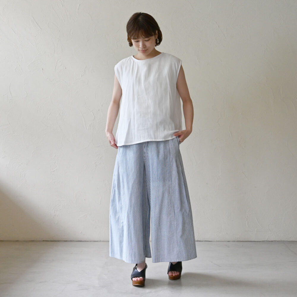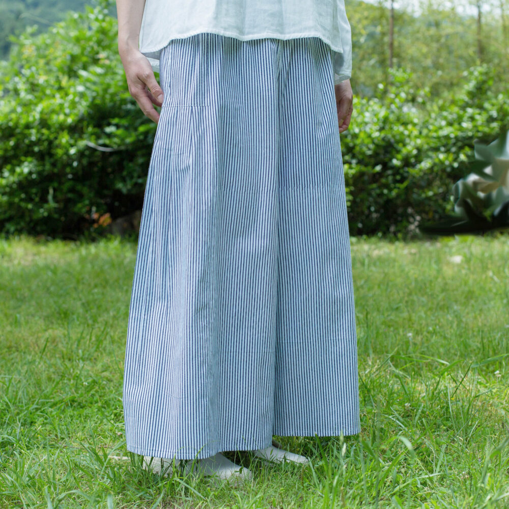 インドの民族衣装「スルワール」をヒントにしたsisamのロングセラーパンツが、タテシマプリント柄で登場です!