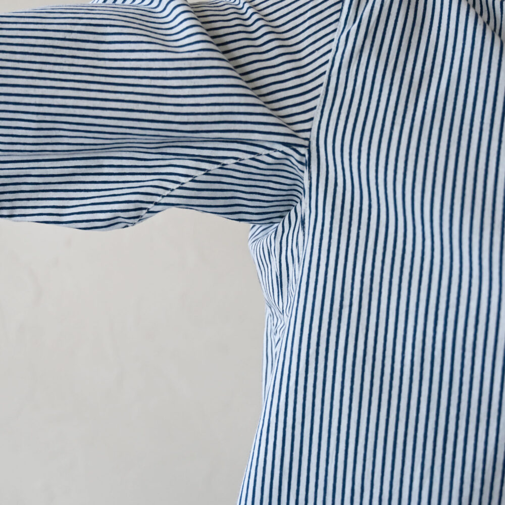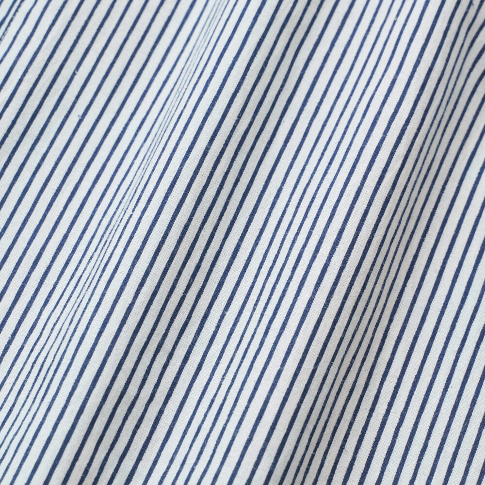 ニュアンスのある色合いの手描き風の細目ストライプを、ハンドスクリーンプリントに。