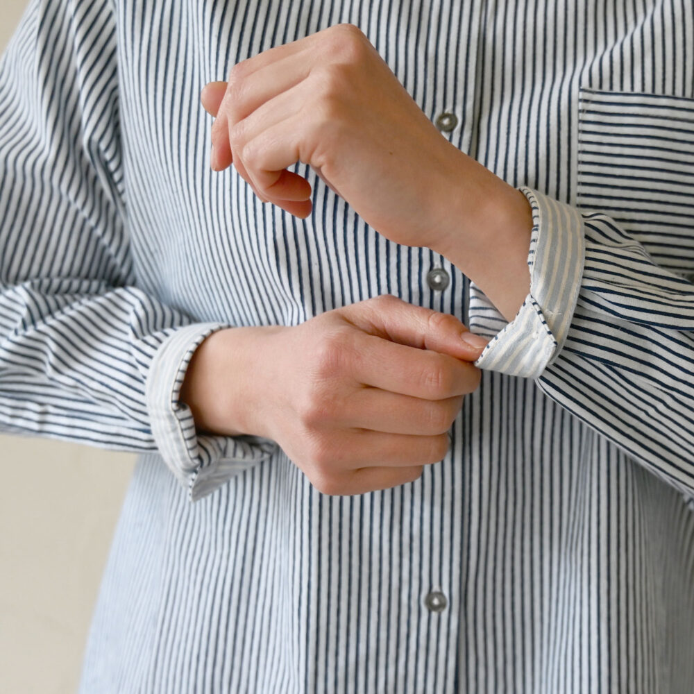カフス部分は、淡い配色の横向きストライプで仕立てました。