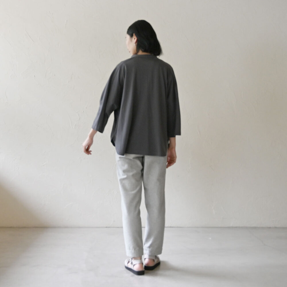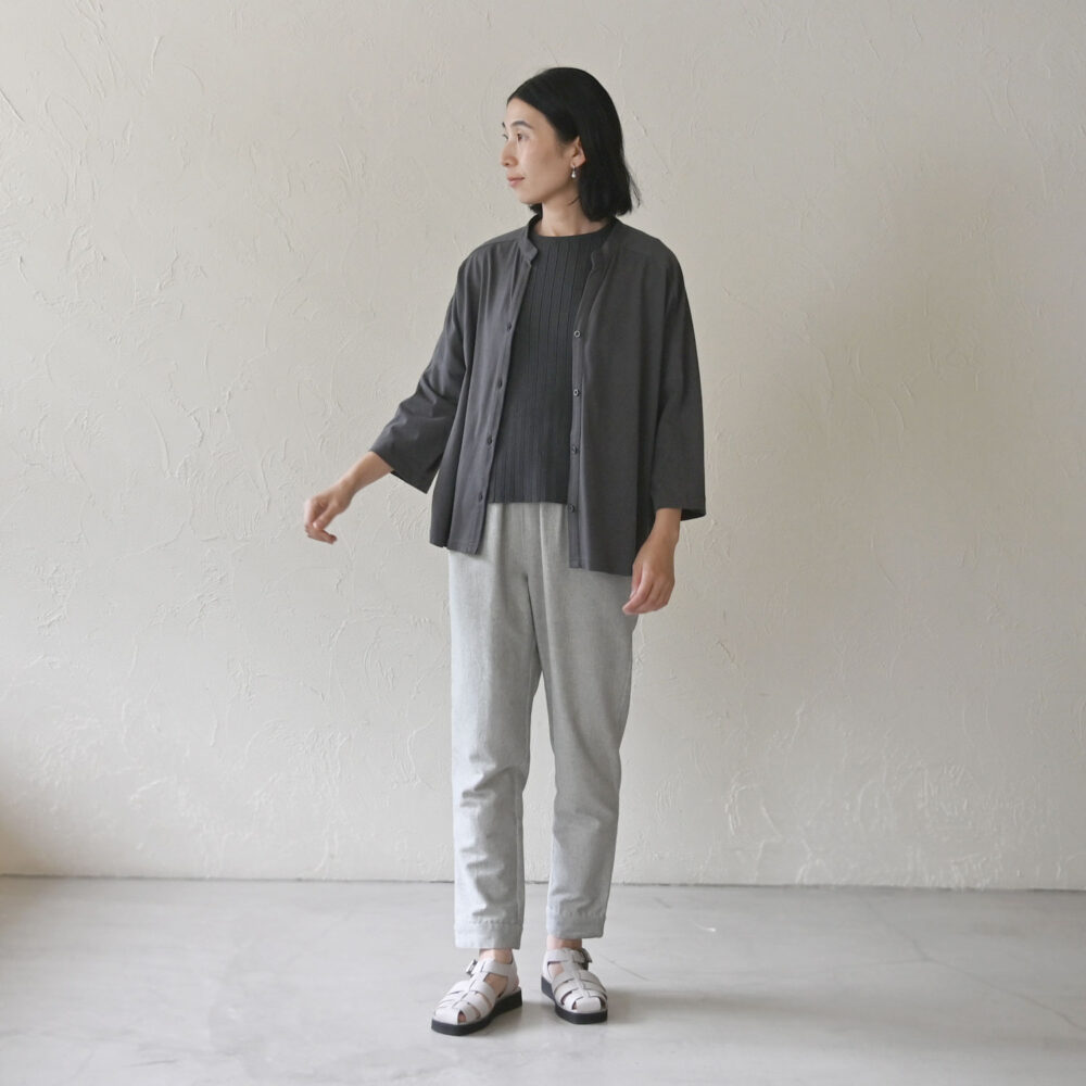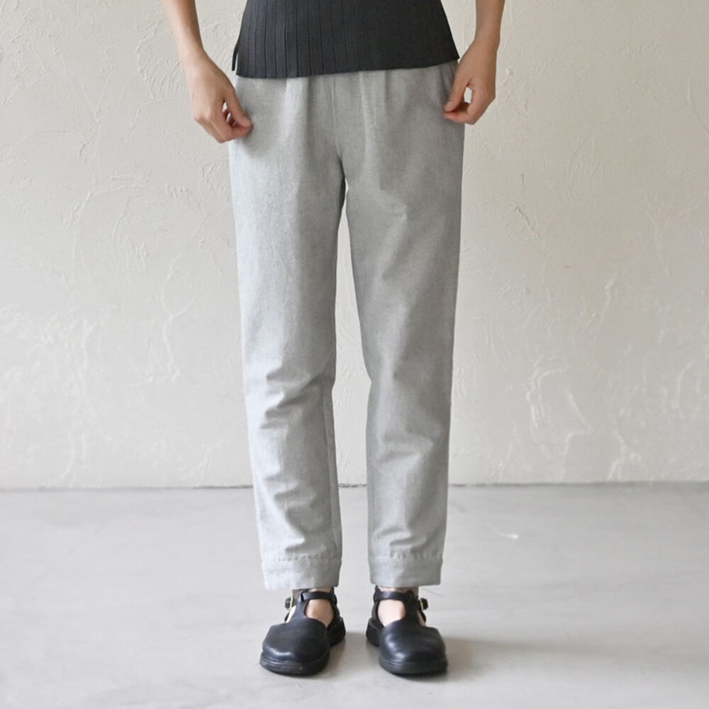 ニュアンスのある生地のパンツなので、グレイのワントーンコーデもおしゃれに決まります!