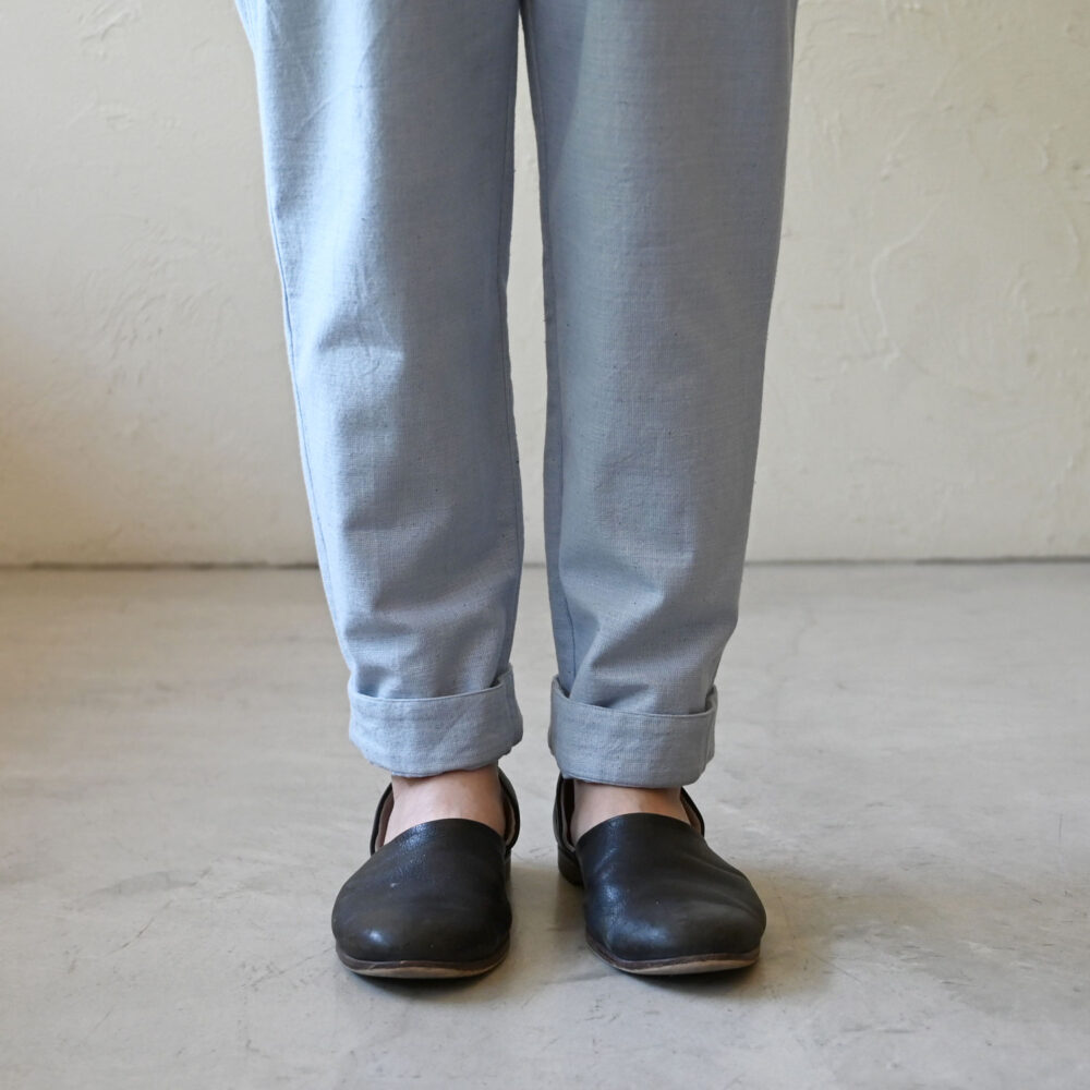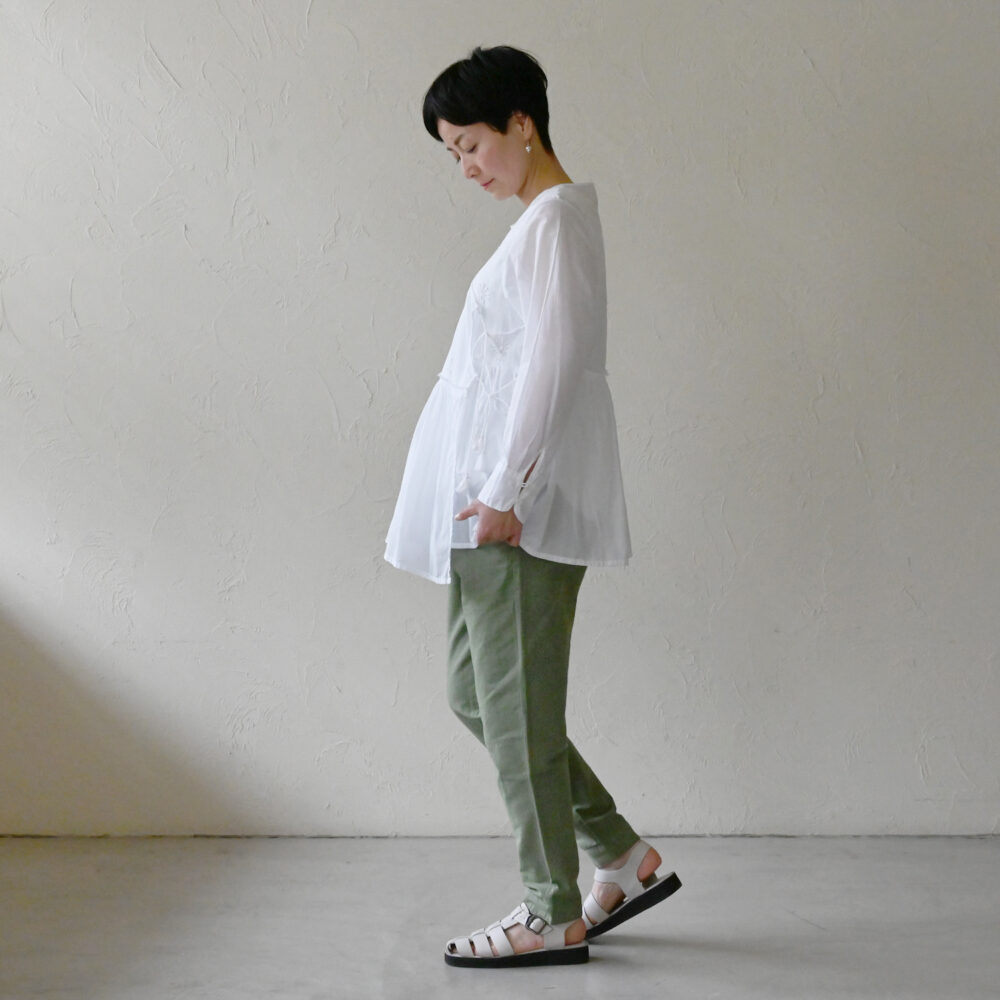 丈が余ってしまう方は、ロールアップで涼やかに穿いていただけます。