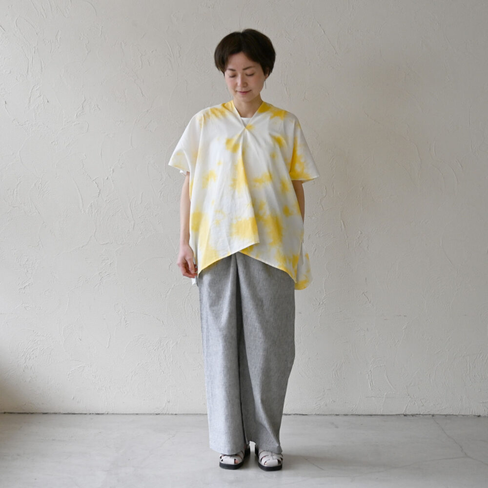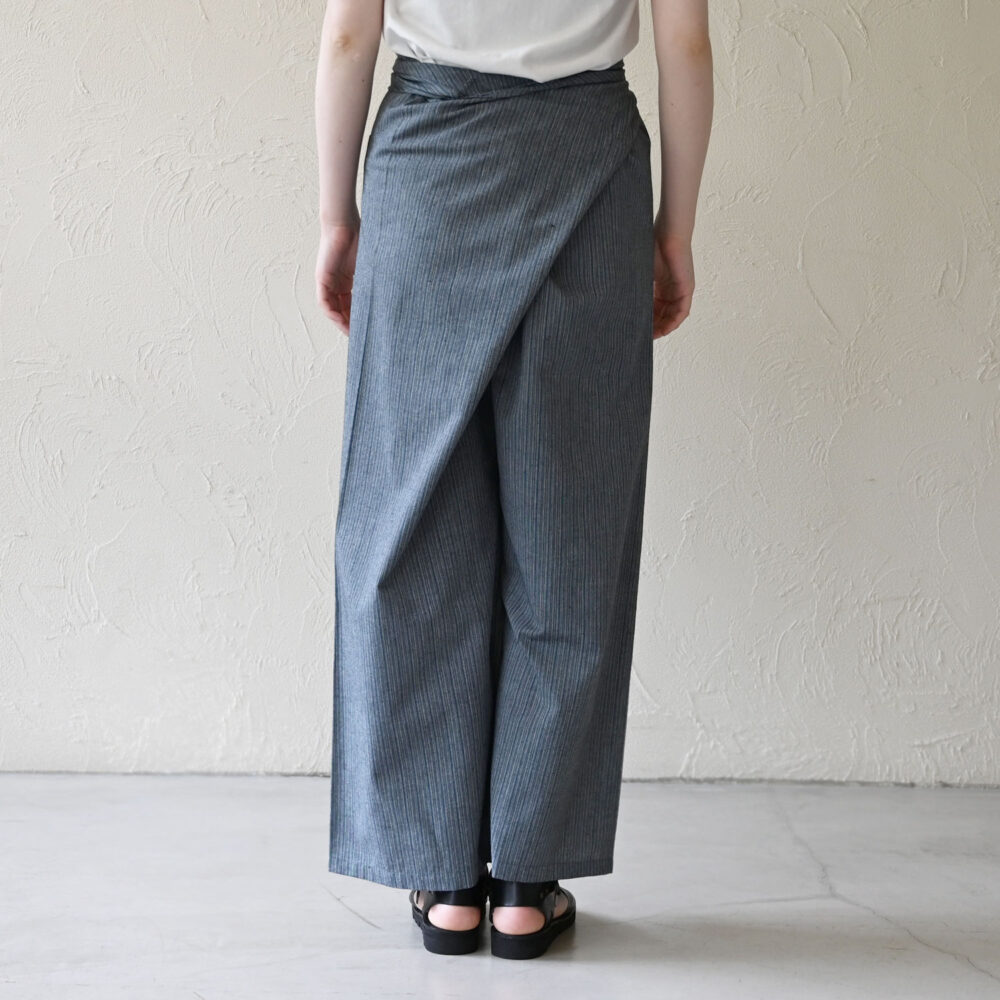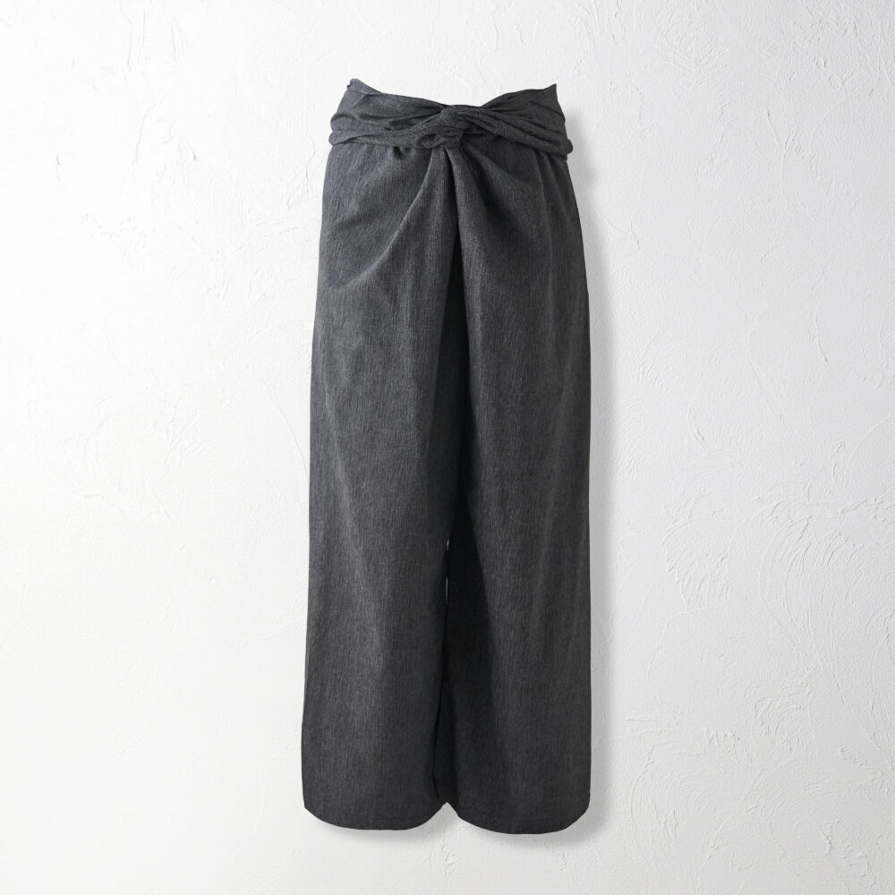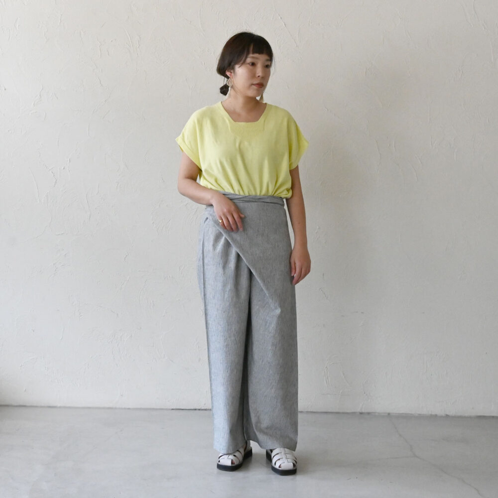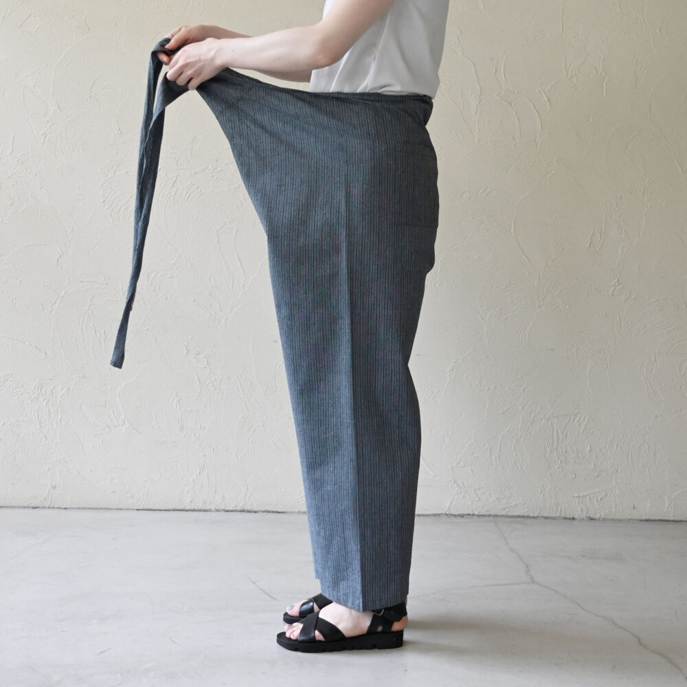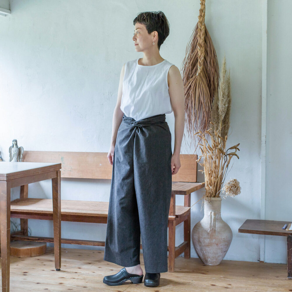 クロスの部分をあえて控えめにし、ワイドパンツとして穿いても◎ 巻いて穿くため体を締め付けすぎずリラックスした気持ちで過ごせます。