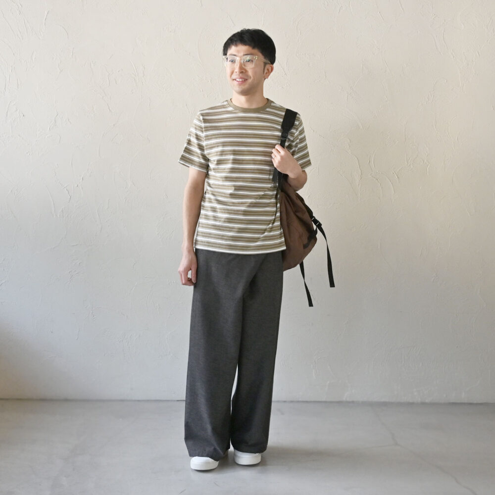 アイテムは変わっていないのに着こなしで変わるクロスパンツの表情を楽しんでください◎