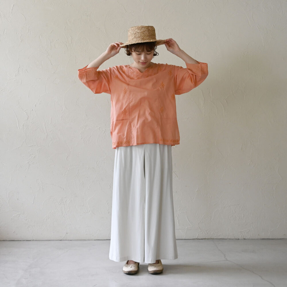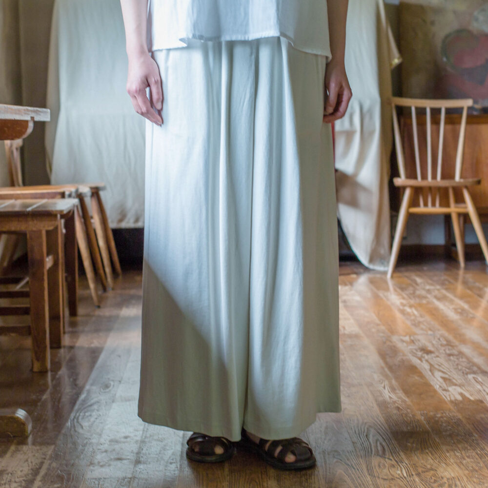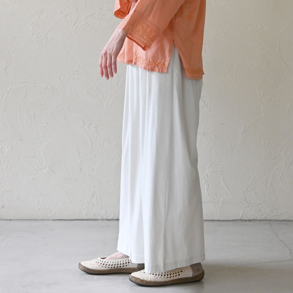 たっぷりのオーガニックコットン生地を使用したワイドパンツ。