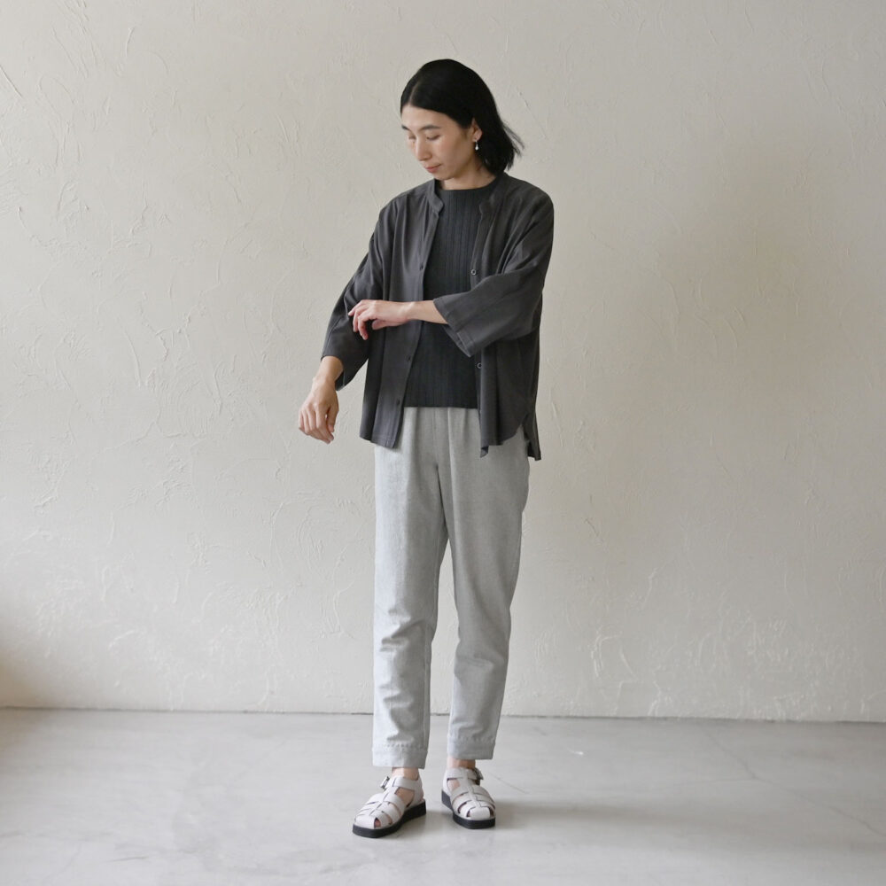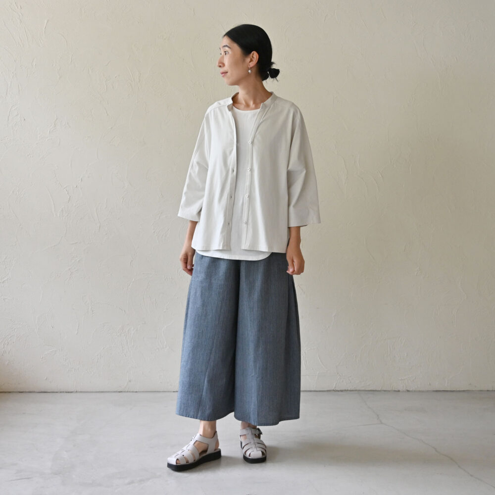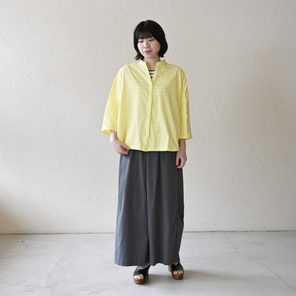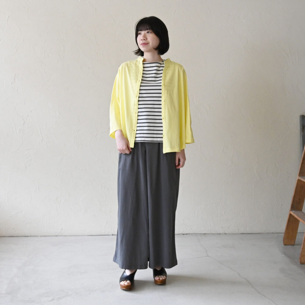 裾は前後差があることでワイドパンツやスカートにも合わせやすいです。