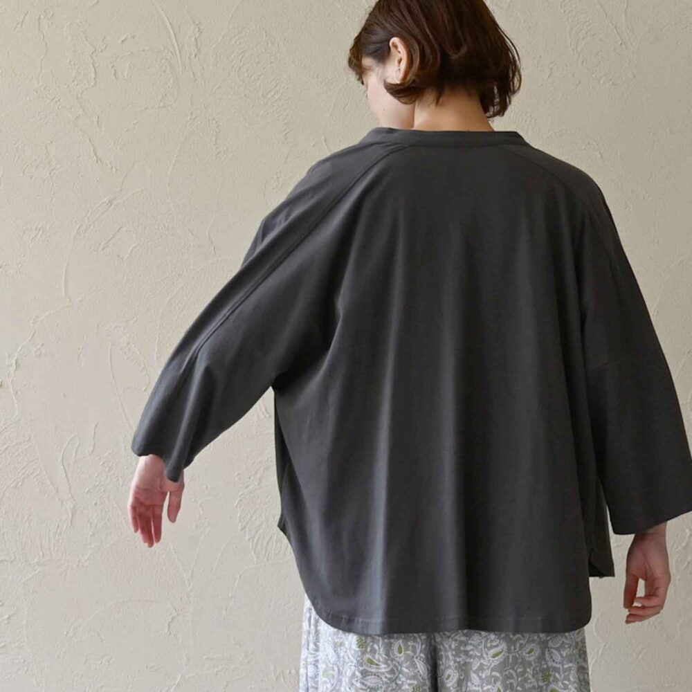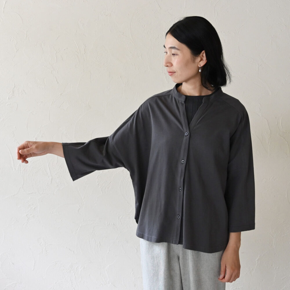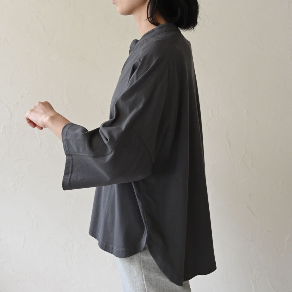 スクエア型の身頃と袖で、すっきりとした雰囲気に仕上げました。
