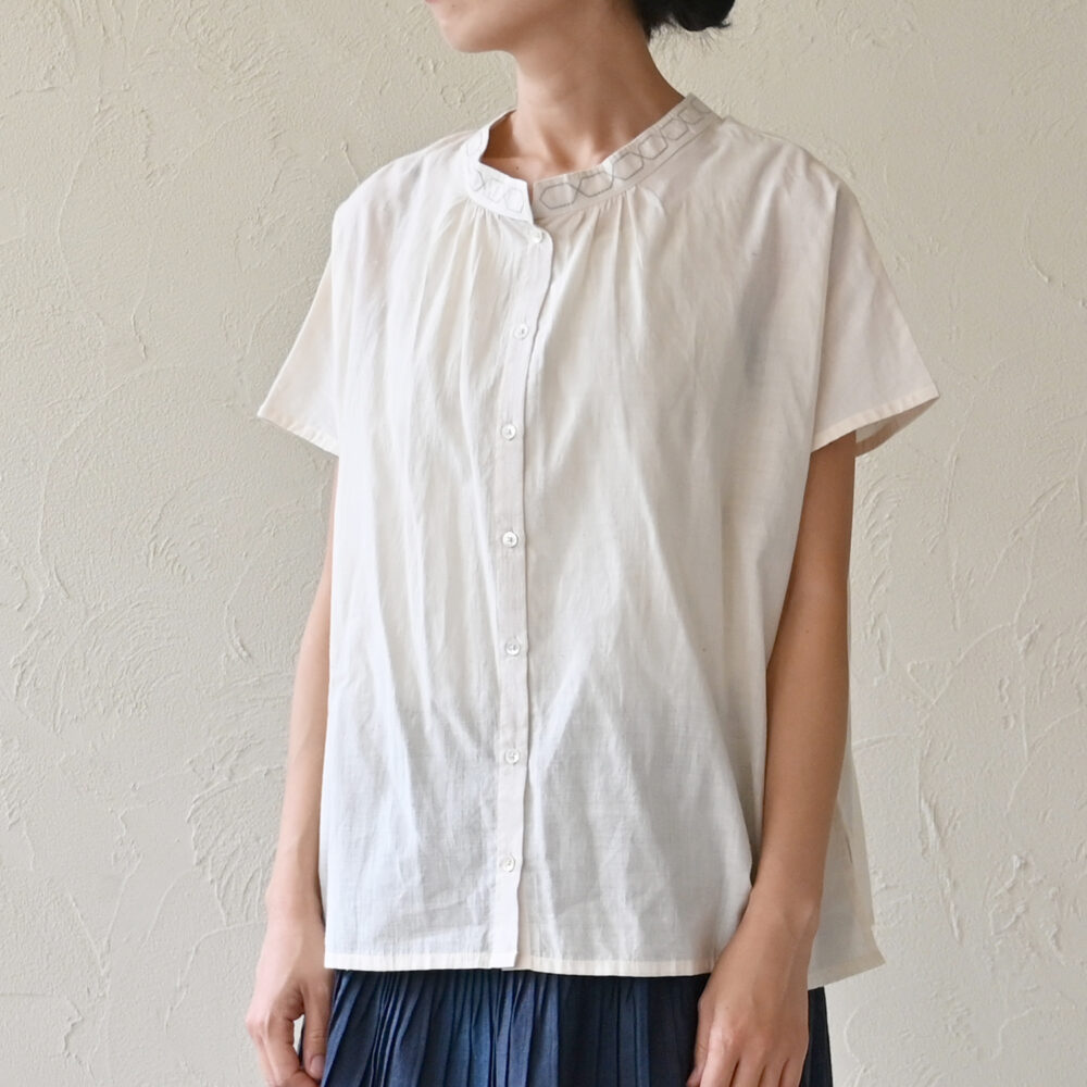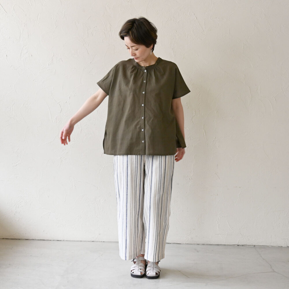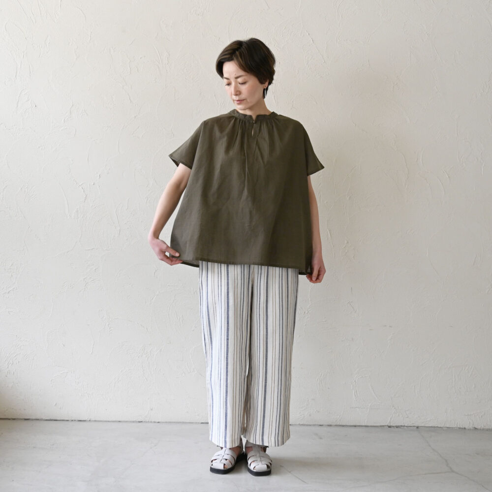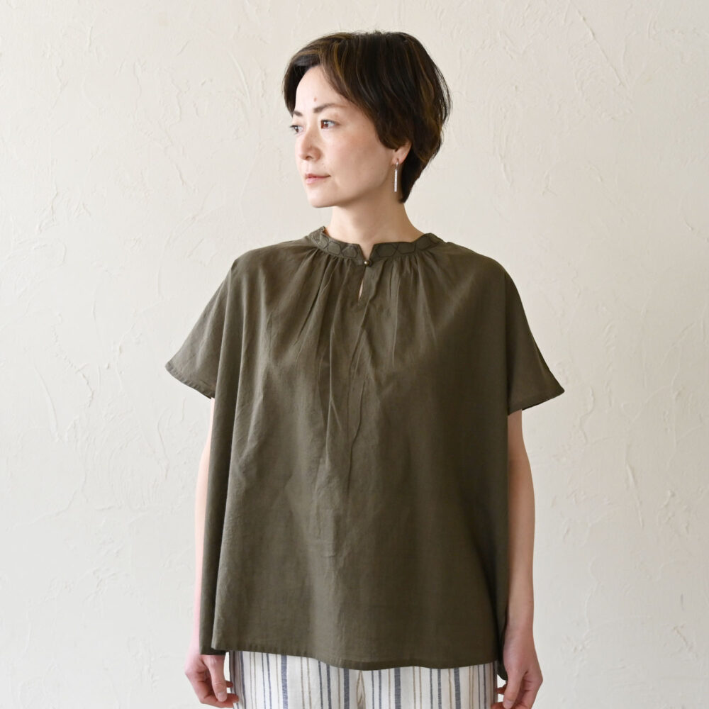 首元に寄ったギャザーが、柔らかくやさしい雰囲気を演出してくれるんです。