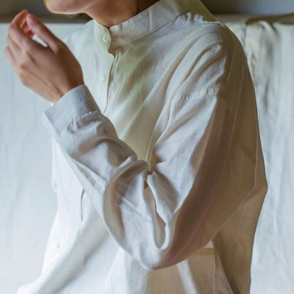 2026年の春夏コレクションでは好評だった以前のデザインをもとに、風にひらりとなびく姿が美しい2wayトップスをおつくりしました。