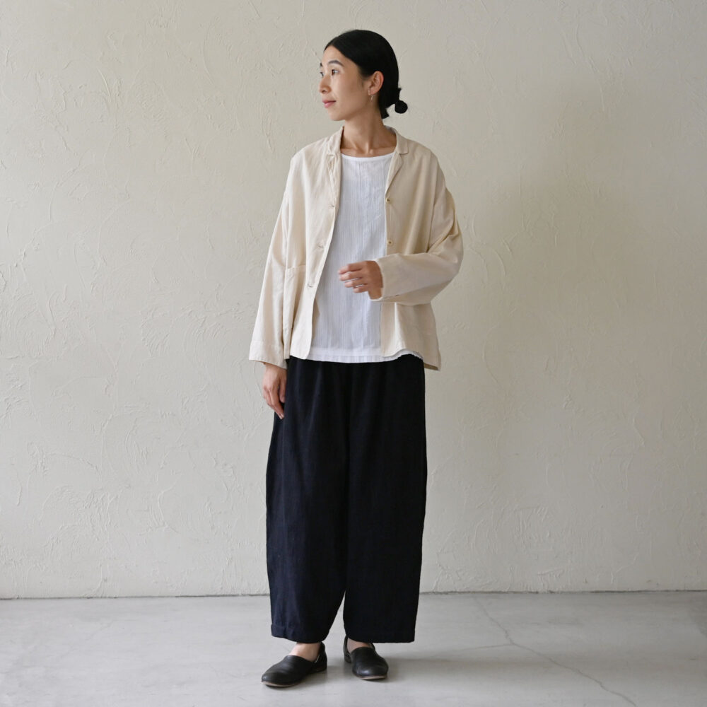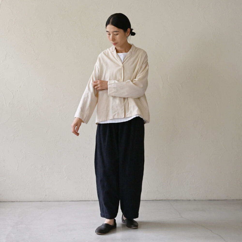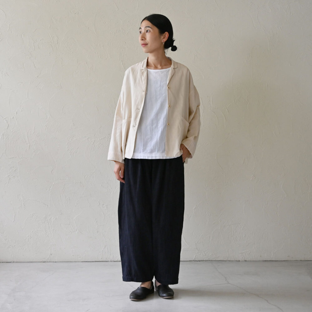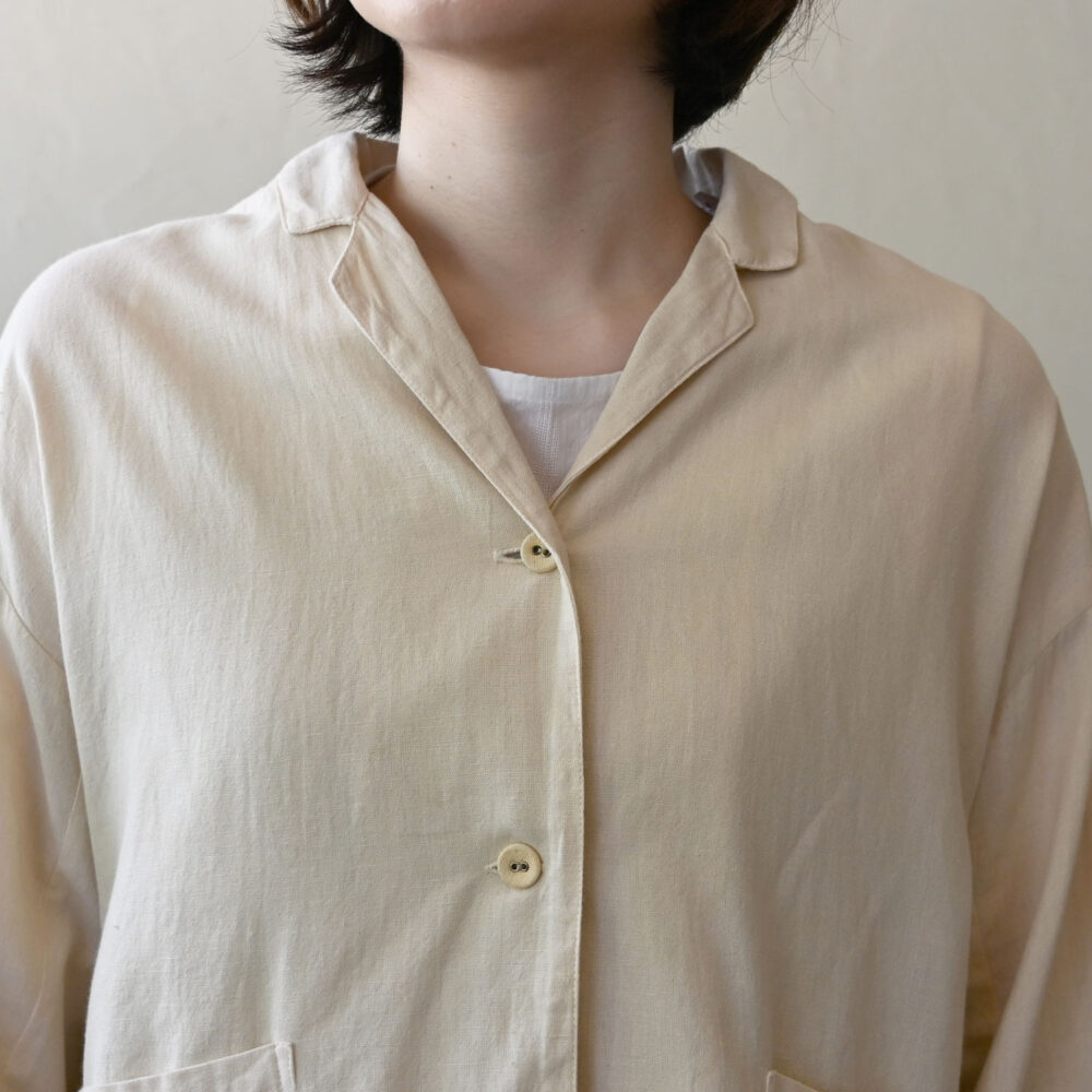 ヘンプコットン生地の味わいも相まって、柔らかな印象を楽しめるジャケットに。