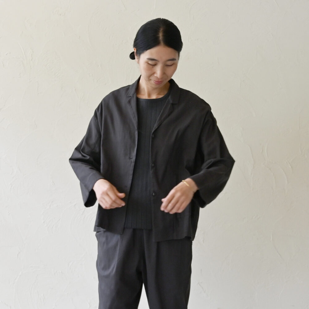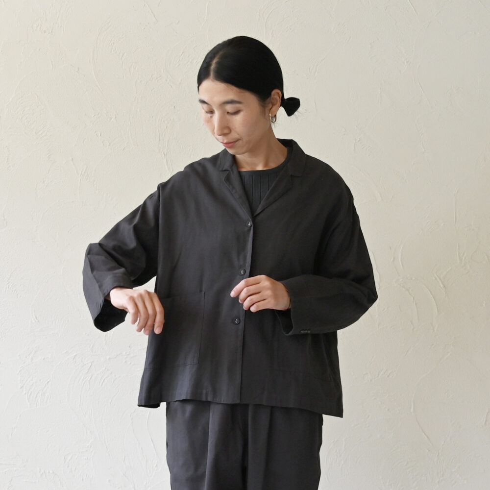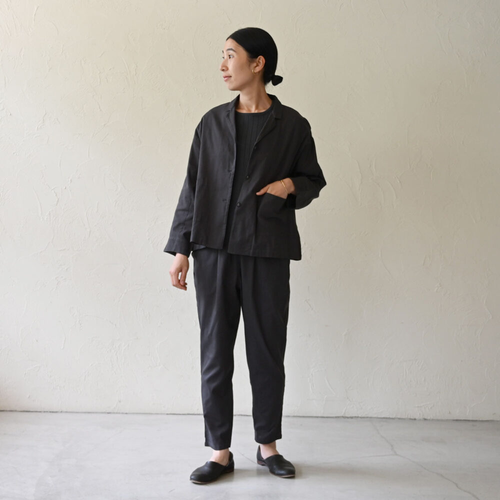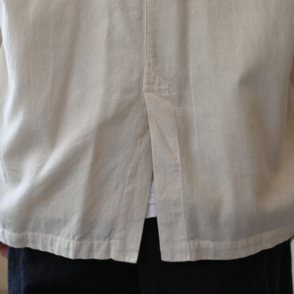 ヘンプコットン生地の味わいも相まって、柔らかな印象を楽しめるジャケットに。