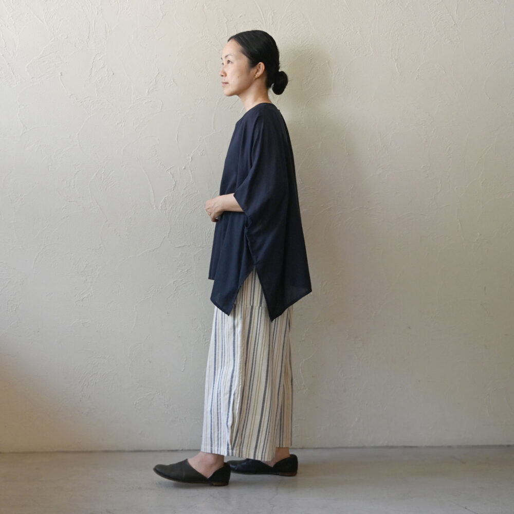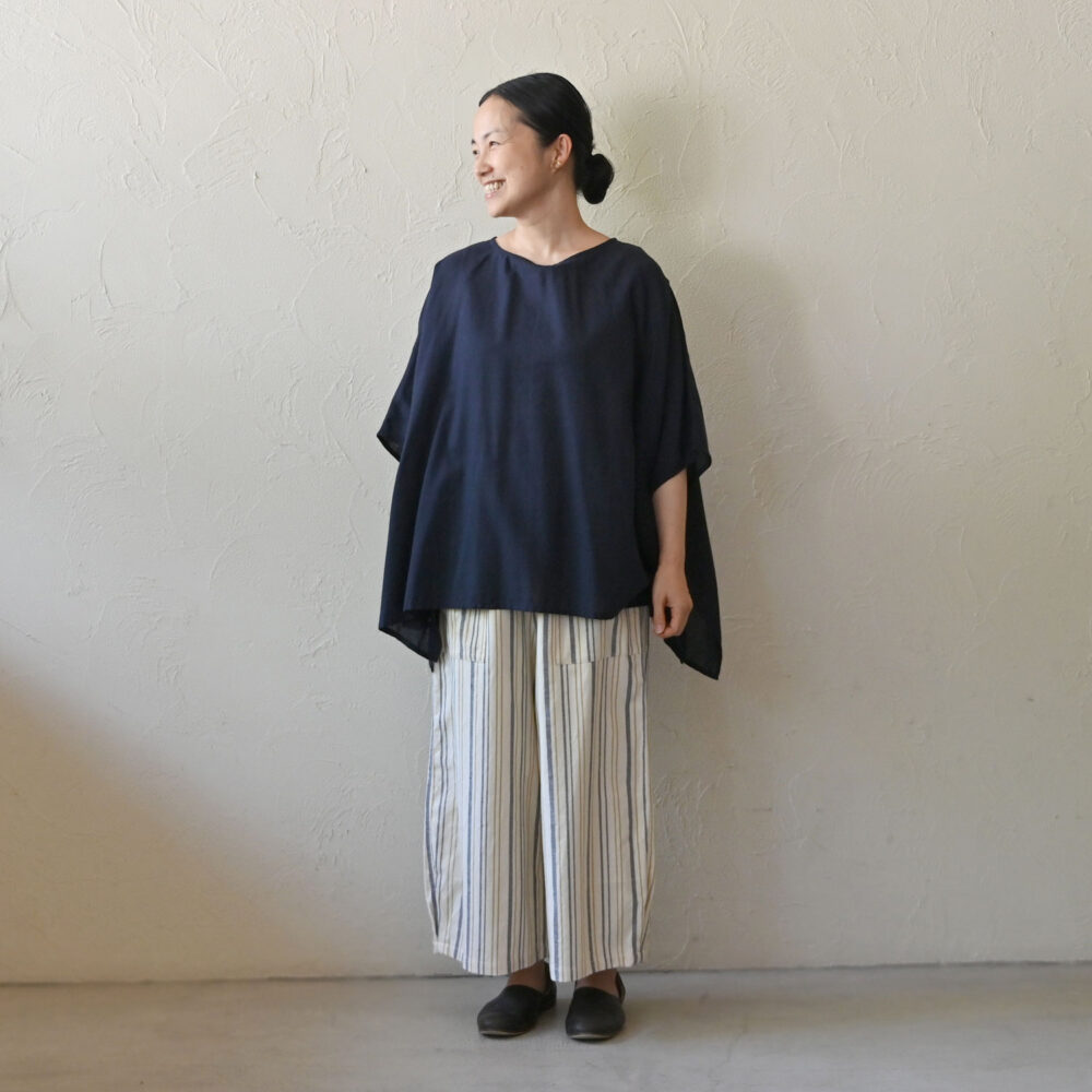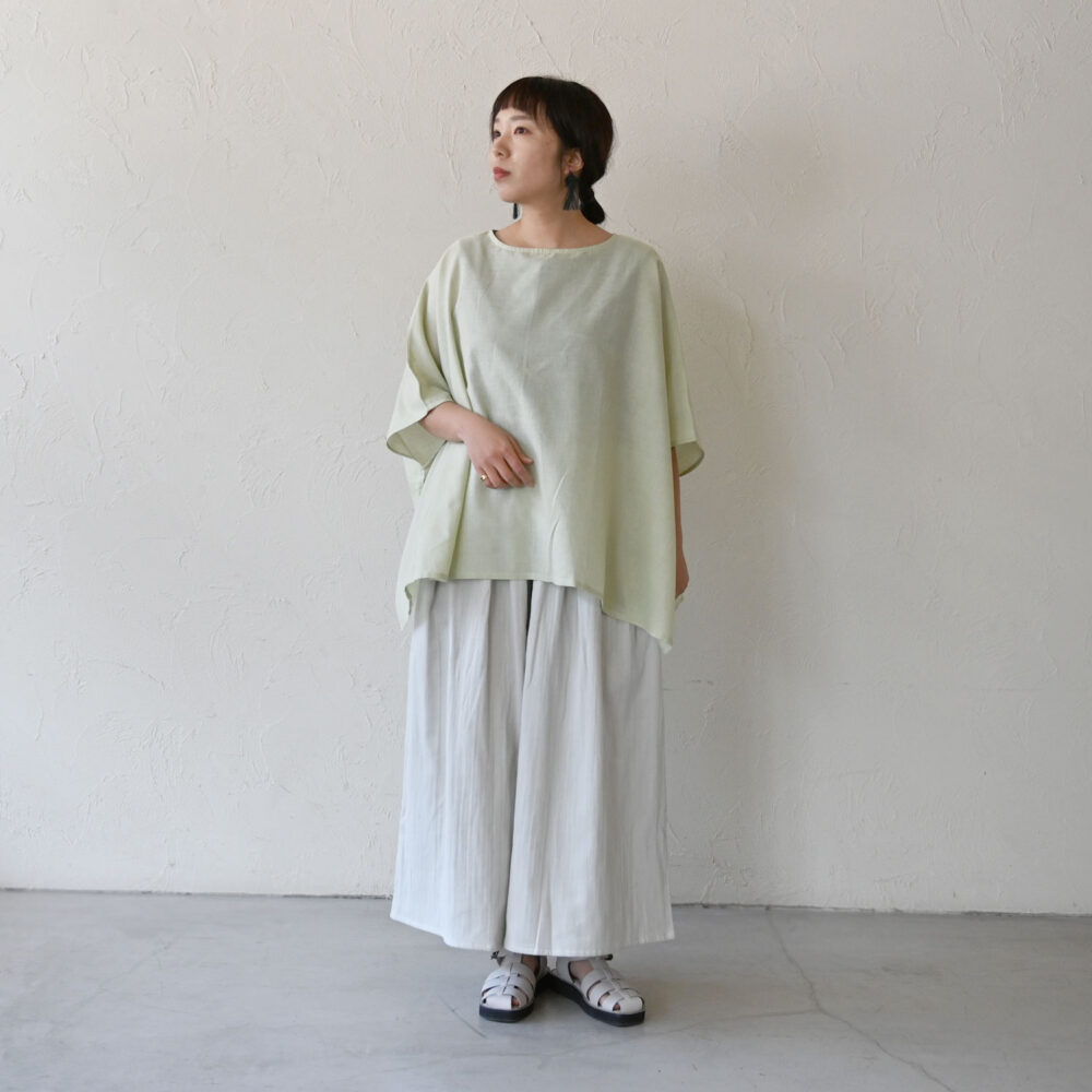風が心地よく通り抜けていくような、ワイドなトップス。