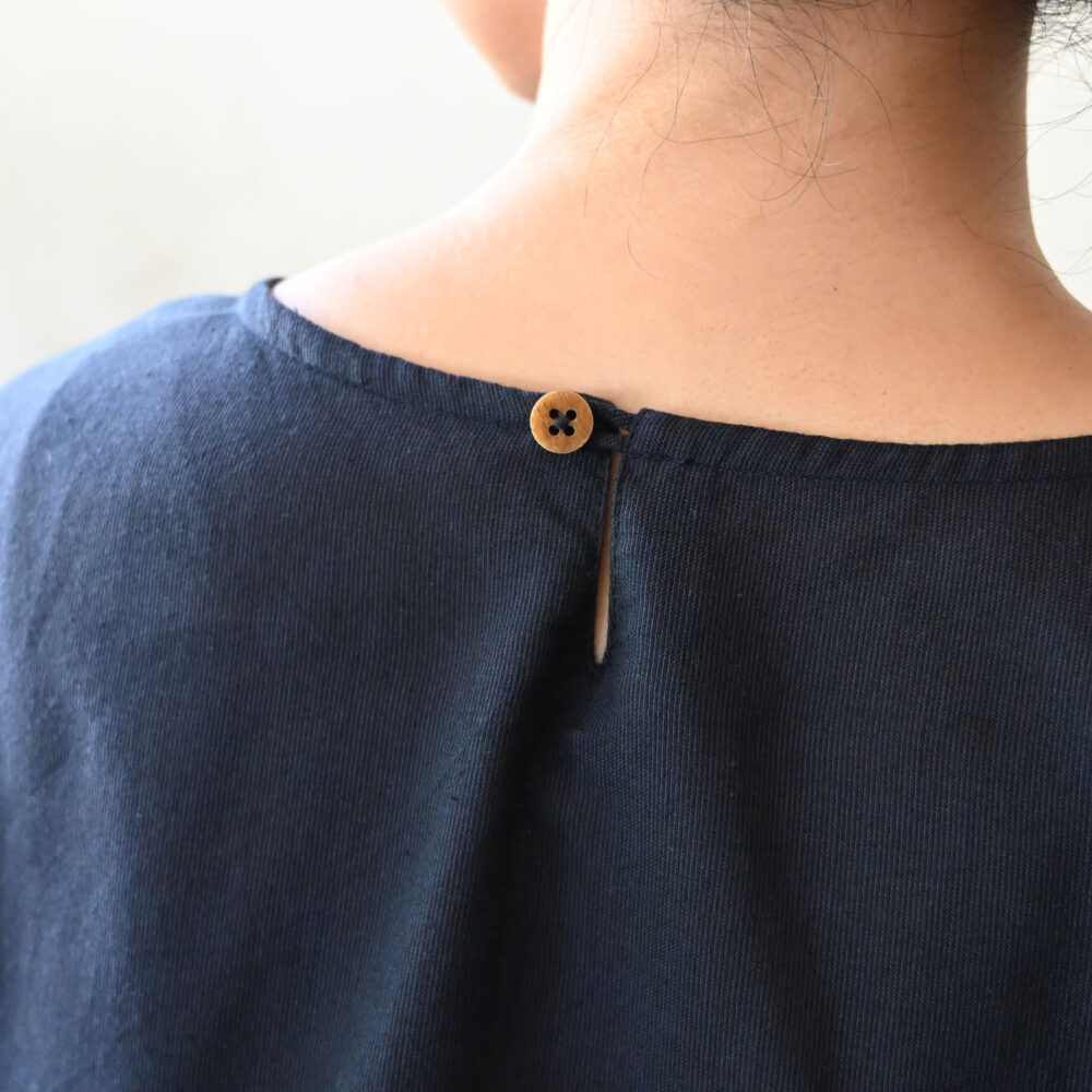 後ろにはちょっとしたアクセントになる、小さなボーンボタンをつけました。